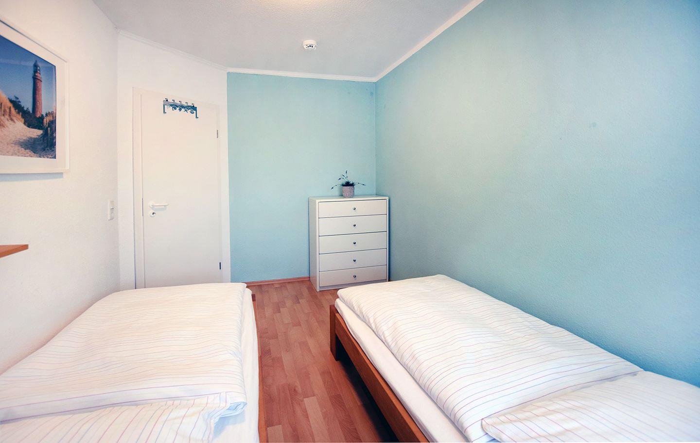 In den beiden Schlafzimmern finden Sie entspannende Nächte: Ein Schlafzimmer mit einem Doppelbett (180 x 200 cm) und ein weiteres Schlafzimmer mit zwei Einzelbetten (80 x 200 cm). Ein Kinderhochstuhl und ein Reisebett (ohne Bettwäsche) sind ebenfalls vorhanden.
