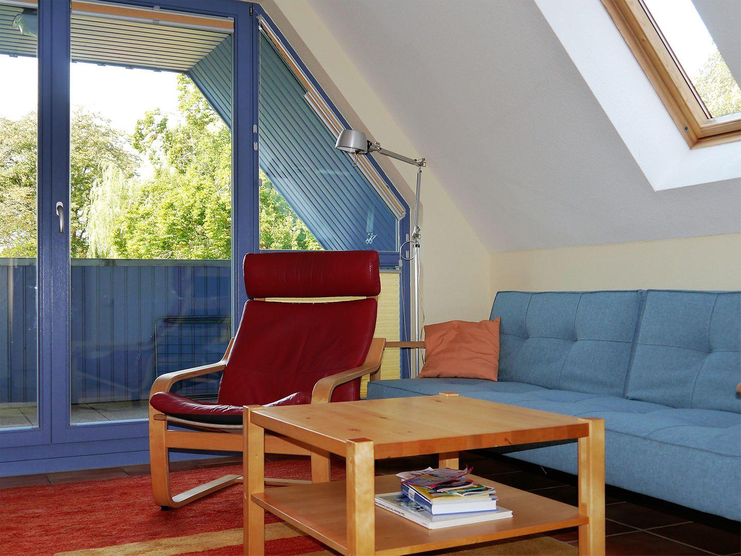 komfortable helle Dachgeschosswohnung für 4 Personen, West-Loggia, WLAN