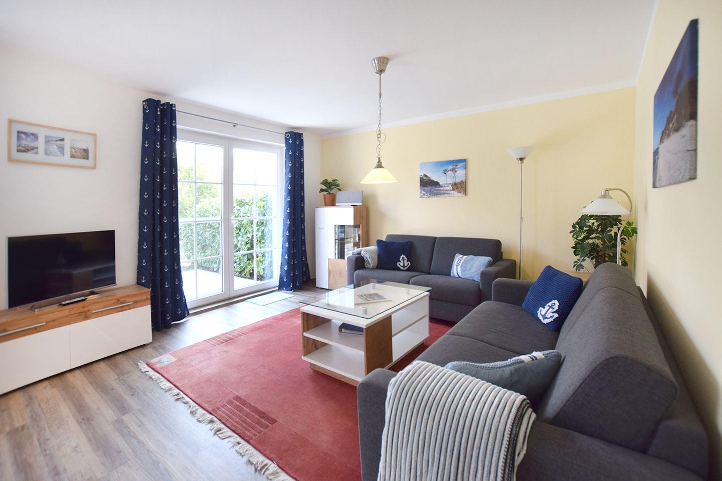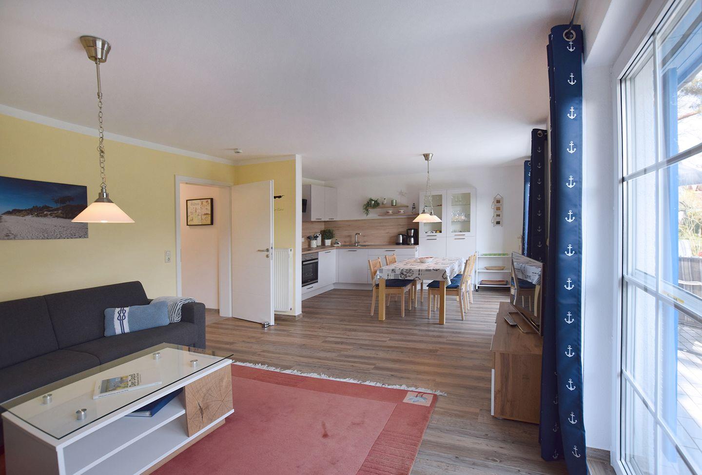 Diese gemütliche Ferienwohnung für bis zu 4 Personen (plus 1 Kleinkind) bietet auf ca. 84 m² eine ideale Unterkunft für Ihren Urlaub. Sie befindet sich im Erdgeschoss und besteht aus einem großzügigen Wohnbereich mit einer modernen Küchenzeile, zwei Schlafzimmern, einem Badezimmer und einem Gäste-WC.