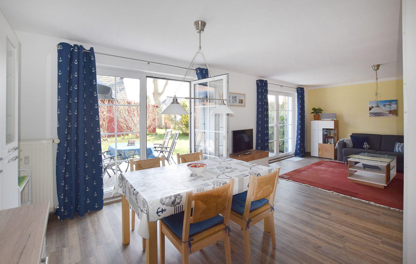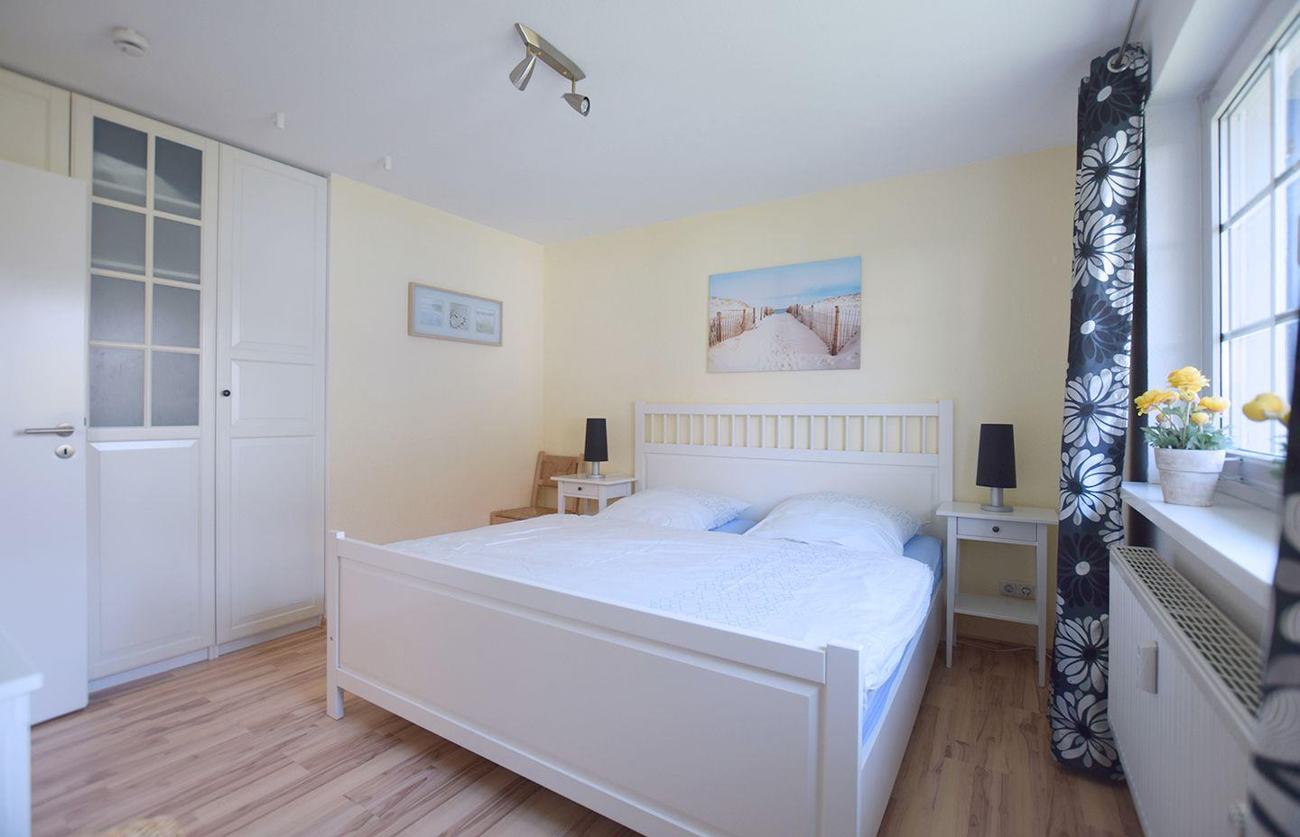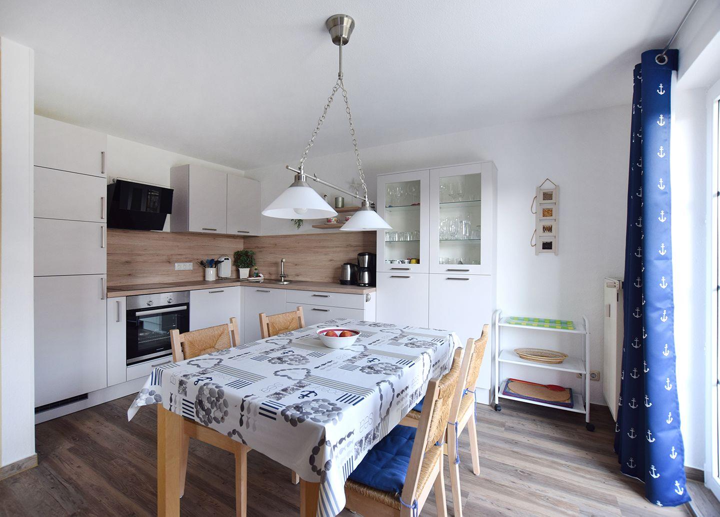 Ferienwohnung bis 4 Personen (+ 1 Kleinkind) | Haustier möglich | ca. 84 m² Wohnfläche | EG Wohnbereich mit Küchenzeile, Bad, Gäste-WC, 2 Schlafzimmer | Süd-Terrasse | 1 Parkplatz | Wohnbereich Esstisch, Sitzgarnitur, Radio mit CD/DVD-Player, SAT-TV | Küchenzeile Backofen, Geschirrspüler, Herd, Kaffeemaschine, Kühlschrank mit Gefrierfach, Toaster, Wasserkocher | Bad Dusche (ebenerdig), WC | Gäste-WC | 2 Schlafzimmer 1 Doppelbett (180 x 200 cm) | 1 Doppelbett (180 x 200 cm) | ab 7 ÜN inkl. Bettwäsche | Kinderhochstuhl, Reisebett, WLAN