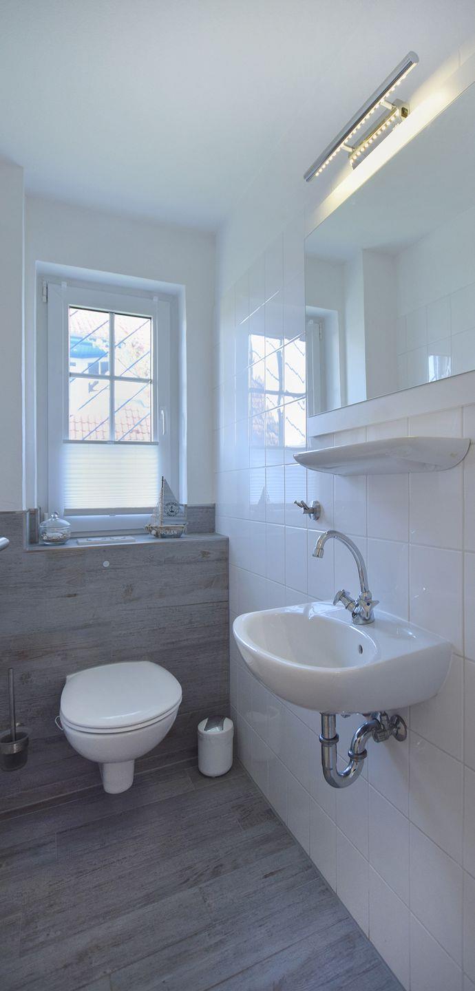 Das Badezimmer ist mit einer bodengleichen Dusche und WC ausgestattet, während das Gäste-WC zusätzlichen Komfort bietet.