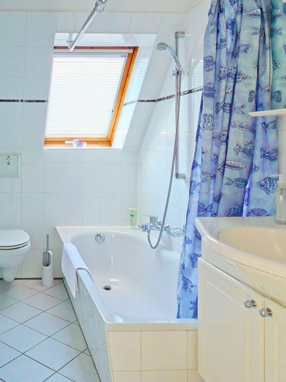 Die beiden Bäder sorgen für zusätzlichen Komfort: Im Obergeschoss finden Sie eine Badewanne und WC, im Dachgeschoss eine Dusche und WC.