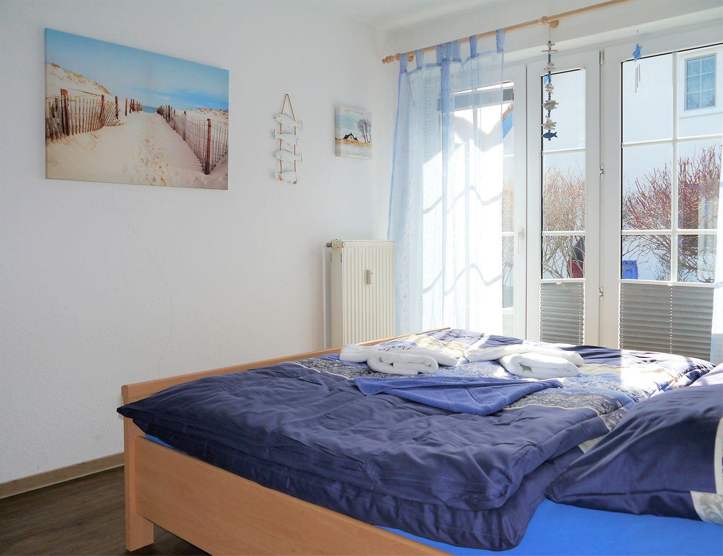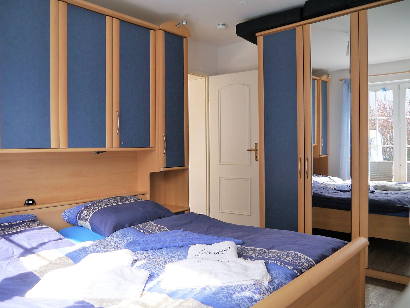 Das Schlafzimmer ist mit einem komfortablen Doppelbett (180 x 200 cm) ausgestattet, das für erholsame Nächte sorgt. Ab 7 Übernachtungen sind Bettwäsche und Handtücher im Preis inbegriffen.