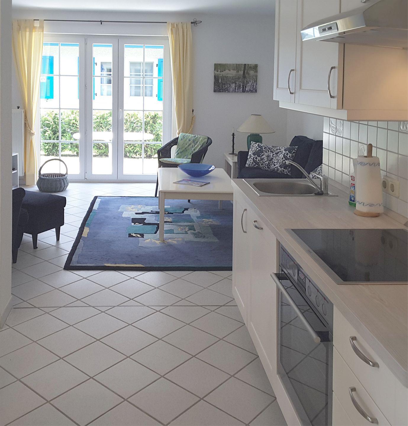 Ferienwohnung bis 4 Personen | ca. 60 m² Wohnfläche | EG Wohnbereich mit Küchenzeile, Bad, 2 Schlafzimmer | West-Terrasse | 1 Parkplatz | Wohnbereich Esstisch, Sitzgarnitur, Radio mit CD/DVD-Player, SAT-TV | Küchenzeile Backofen, Geschirrspüler, Herd, Kaffeemaschine, Kühlschrank mit Gefrierfach, Toaster, Wasserkocher | Bad bodengleiche Dusche, WC | 2 Schlafzimmer 1 Doppelbett (180 x 200 cm), 1 Doppelbett (180 x 200 cm) | Ab 7 ÜN inkl. Bettwäsche | WLAN