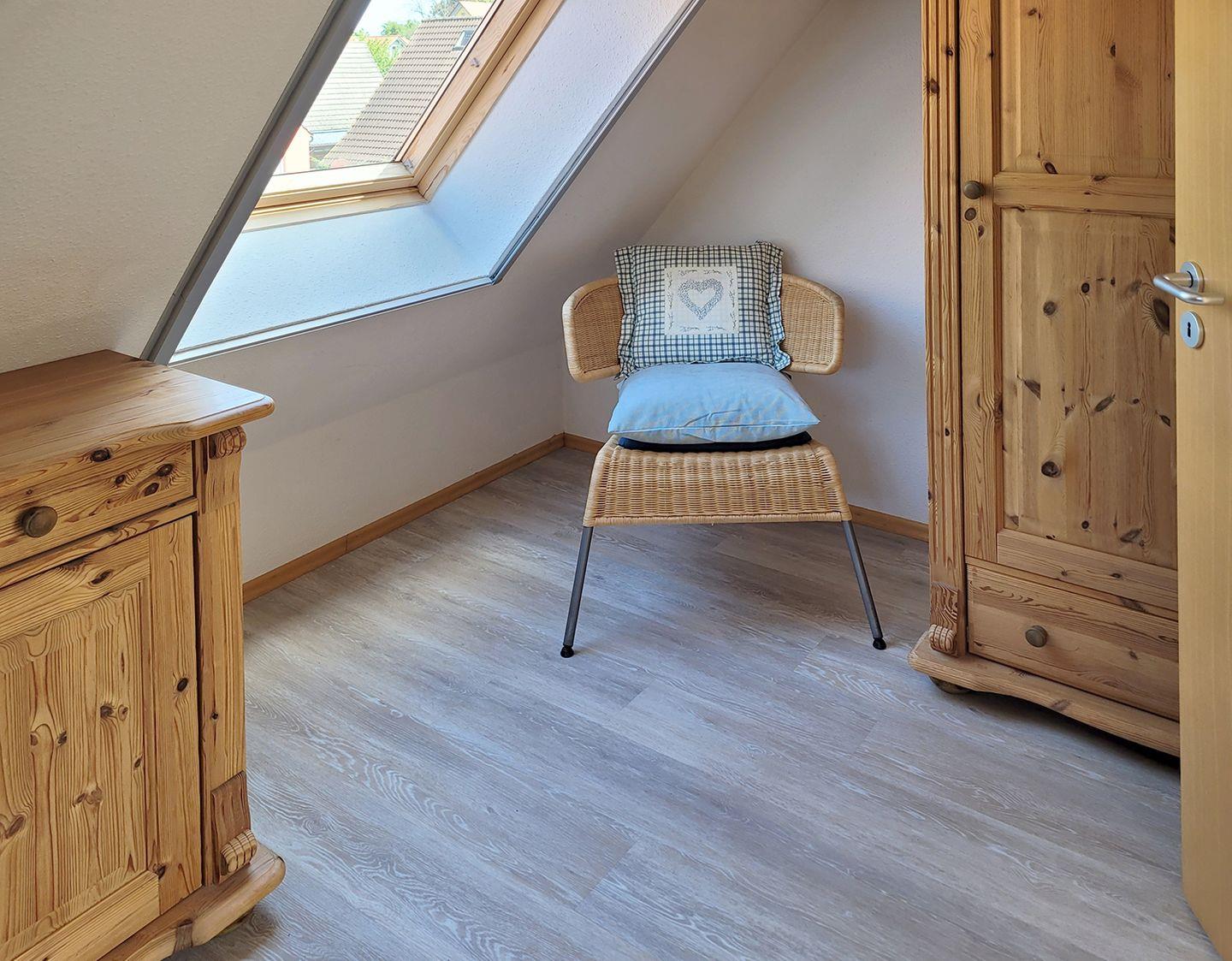 Diese Ferienwohnung in ruhiger Lage von Prerow bietet auf ca. 70 m² Wohnfläche Platz für bis zu 4 Personen sowie ein Kleinkind (bis 3 Jahre). Sie erstreckt sich über das Ober- und Dachgeschoss eines gepflegten Hauses und ist ideal für Familien oder Paare, die einen entspannten Urlaub in der Natur suchen.