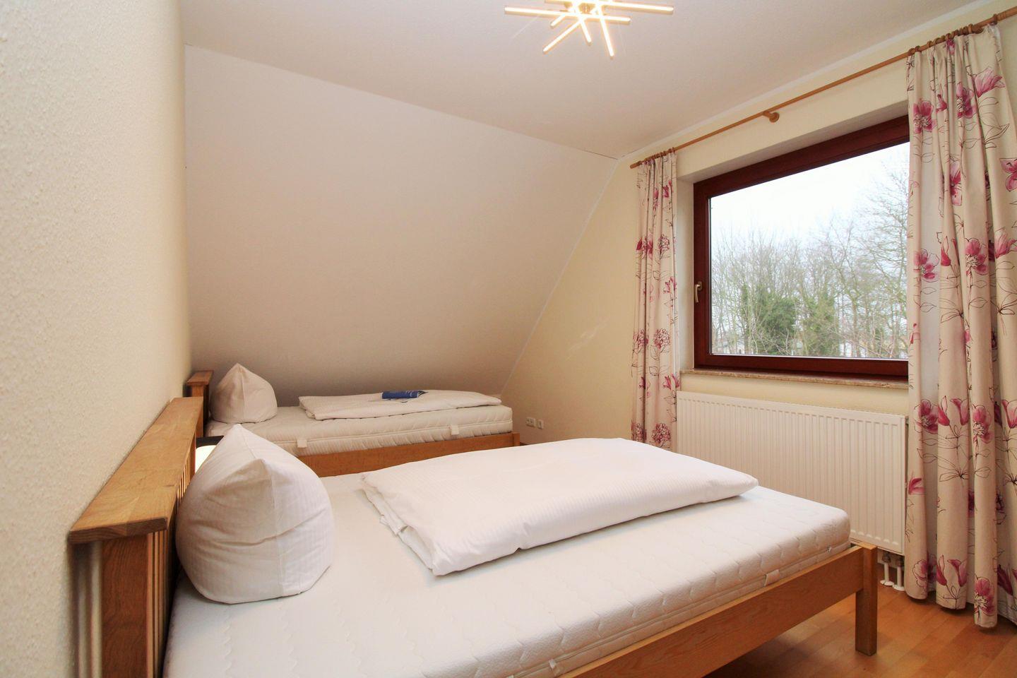 Die Ferienwohnung verfügt über insgesamt 3 separate Schlafzimmer im 1. Obergeschoss Ihres Feriendomizils. Alle Schlafräume sind an den Fenstern mit Fliegengittern ausgestattet.