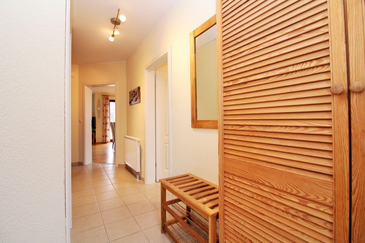 Vom geräumigen Flur mit Garderobe, Spiegel, Sitzbank und Schuhregal erreichen Sie bequem alle Räume Ihrer Ferienwohnung.