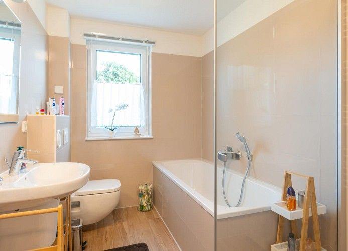 Die separate Küche ist mit allem ausgestattet, was Sie zum Kochen benötigen. Das moderne Badezimmer verfügt über eine Dusche und eine Badewanne. Geschmackvoll geflieste Böden mit Fußbodenheizung und eine geregelte Umluftanlage sorgen für ein angenehmes Raumklima.