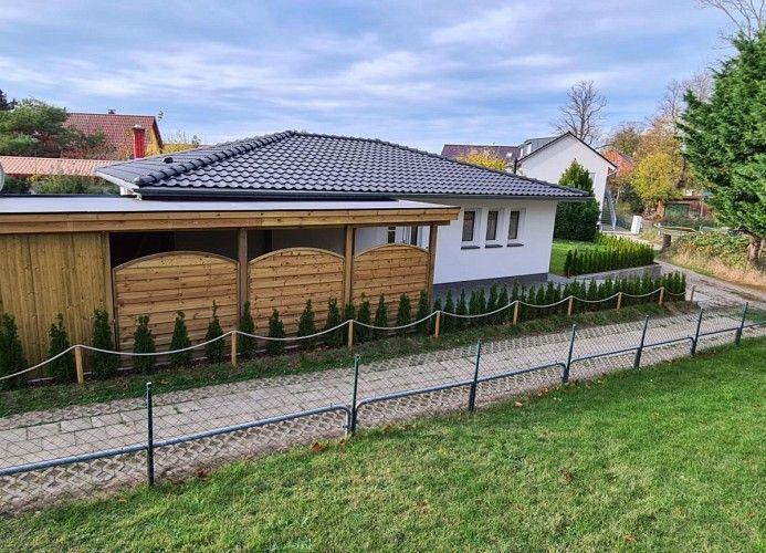 Erleben Sie Ihren Traumurlaub in Ihrem "eigenen" Ferienhaus: Hochwertig ausgestattet und 2022 fertiggestellt. Genießen Sie die Parkmöglichkeiten für mindestens 2 PKW und die Möglichkeit, Elektrofahrzeuge mit 11 KW aufzuladen. Auch für Ihre E-Bikes gibt es einen abschließbaren Raum im Carport mit Lademöglichkeit.