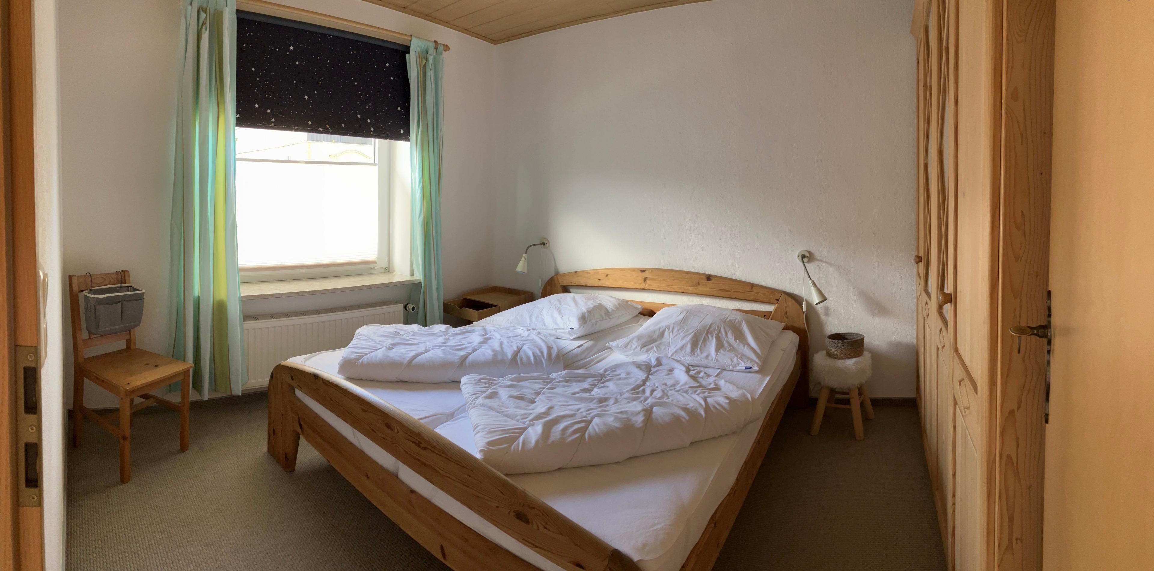 Die Ferienwohnung verfügt über einen gemütlichen Wohnbereich mit Küchenzeile und großem Esstisch. Der Küchenbereich ist voll ausgestattet. Zudem verfügt die Wohnung über zwei Schlafzimmer, eines mit gemütlichem Doppelbett, das andere mit zwei Einzelbetten. Ein Kinderbett ist zusätzlich vorhanden. Eine Terrasse gehört ebenfalls zum Angebot.