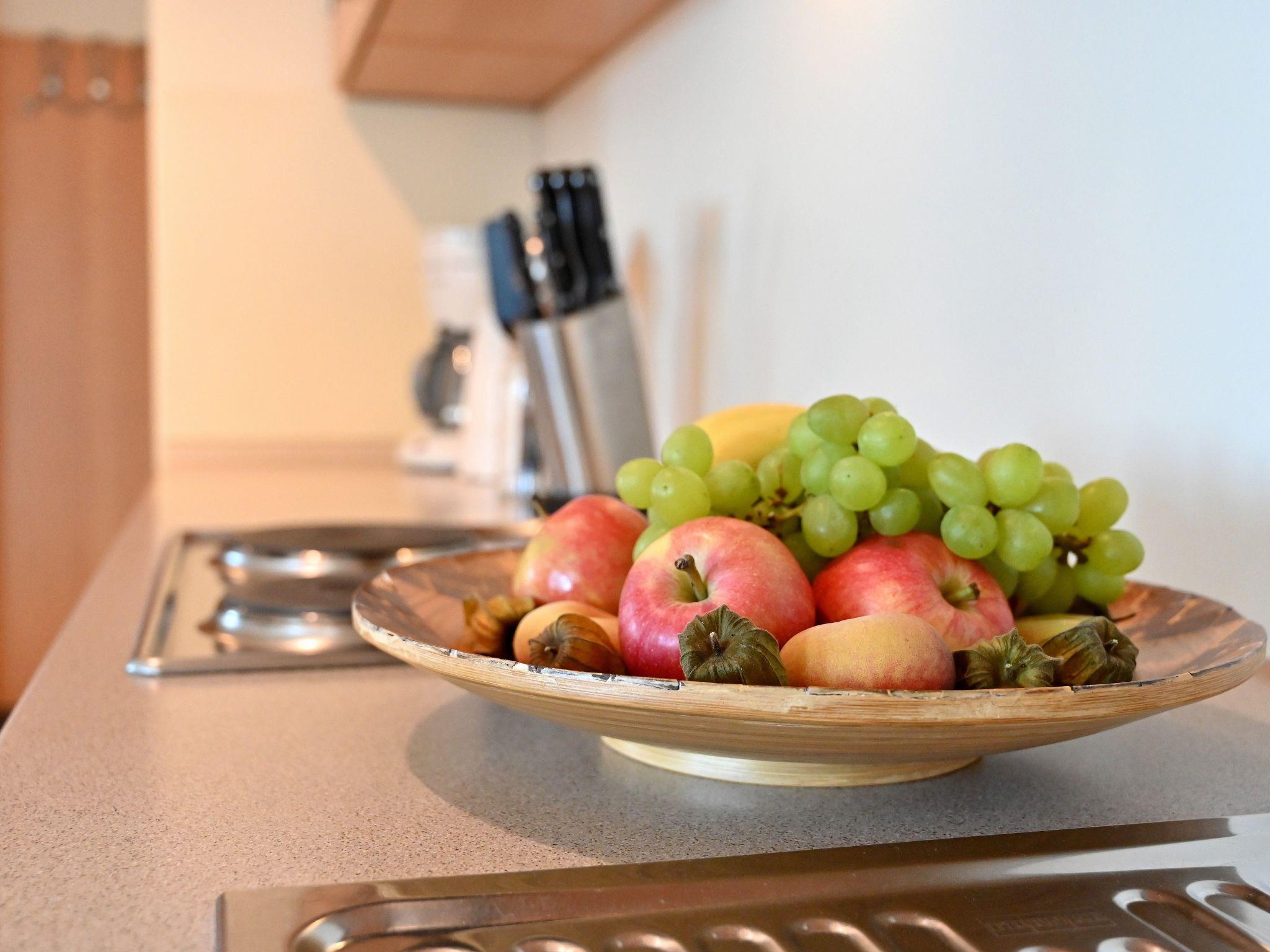 It offers two bedrooms, an open-plan kitchen with living area, a bathroom and a balcony. The double bed is 1.80m x 2.00m, the second bedroom has two single beds measuring 0.90m x 2.00m each. The fifth and sixth person can be accommodated on the double sofa bed in the living area. The fully equipped kitchenette not only has an oven, hob and fridge, but also a toaster, kettle and dishwasher. This makes washing up easy. The bathroom is equipped with a shower, WC, hairdryer and washbasin. A cot and high chair can be added free of charge on request. Free WLAN is of course also available. A lift takes you to the 3rd floor.