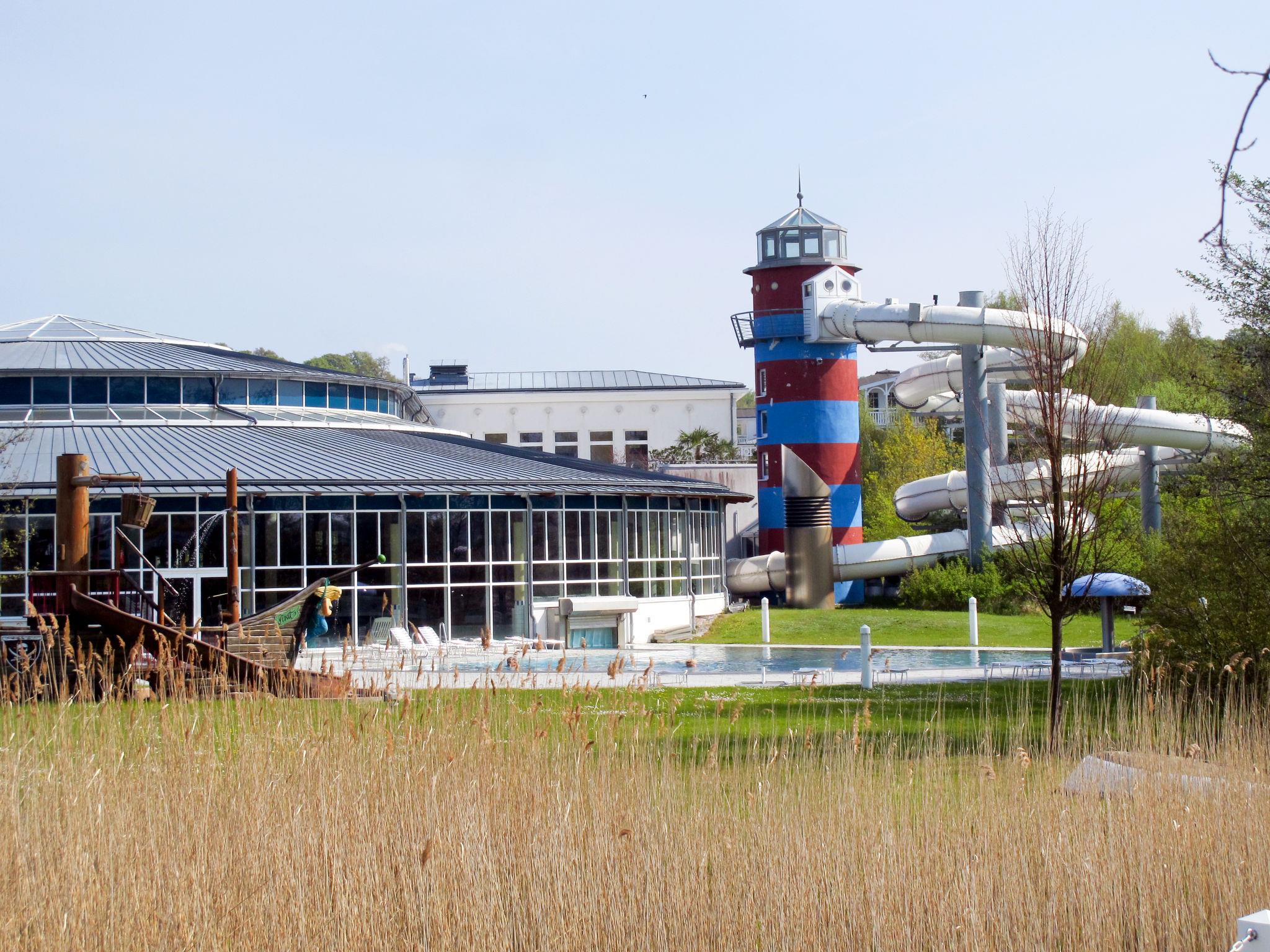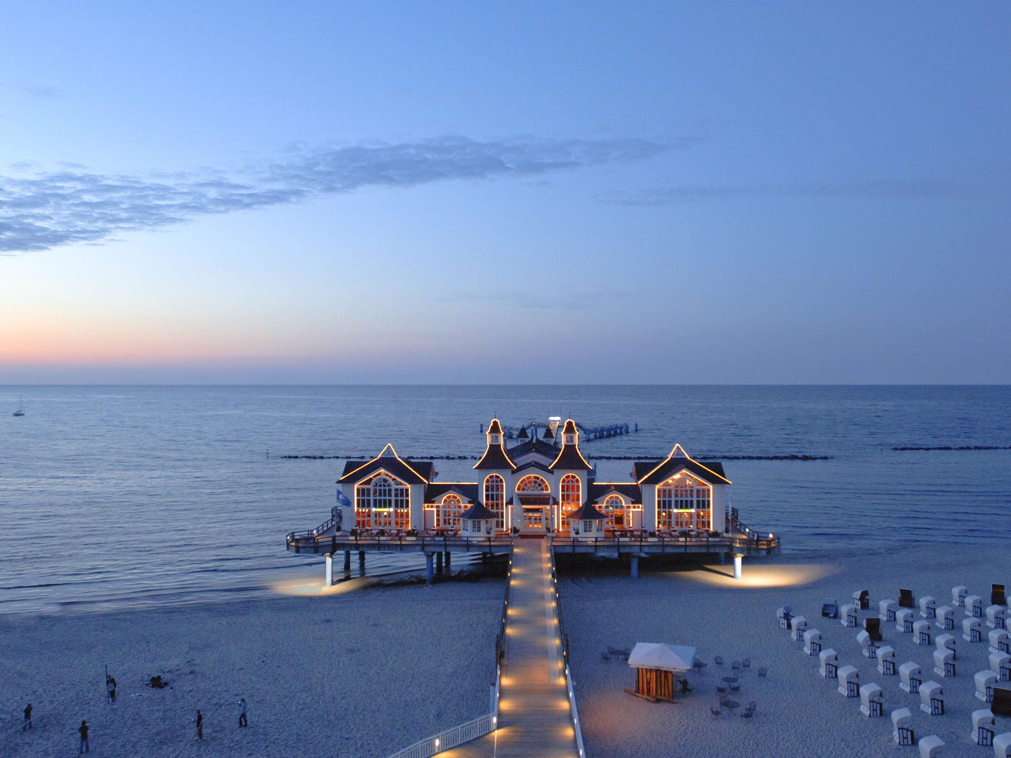 Resort "Seepark Sellin", 4 storeys. 8 houses in the residence. 200 apartments in the residence. 800 m from the centre of Sellin, on the outskirts, 8 km from the centre of Göhren, 10 km from the centre of Binz, 800 m from the sea. For shared use: property, well-kept garden with lawn. Table tennis, children's playground. Private: children's playground. In the complex: reception, restaurant, fitness room, table tennis, table football, boutique, storage room for bicycles, central heating system, washing machine (extra), tumble dryer (for shared use, extra), bicycle rental. Bread roll service. Communal covered parking (extra). Supermarket 100 m, bus stop "Sellin, Hauptstrasse" 700 m, railway station "Sellin Ost" 400 m, sandy beach 800 m, indoor swimming pool 100 m. The photo is just an example. All houses/apartments are individually designed/furnished. 3 free SKY channels included. AHOI swimming pool approx. 100m away, discount available at reception.