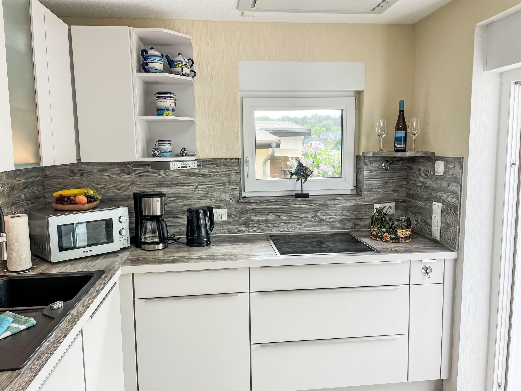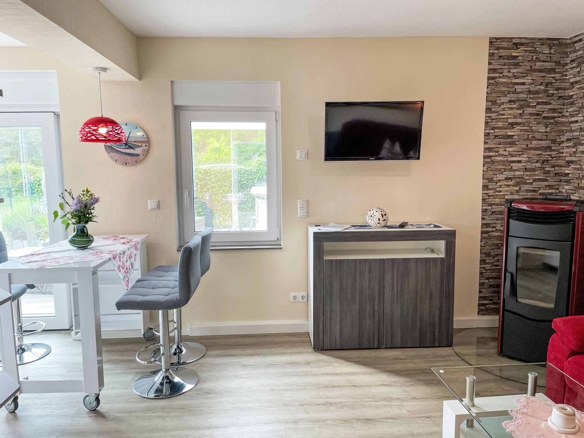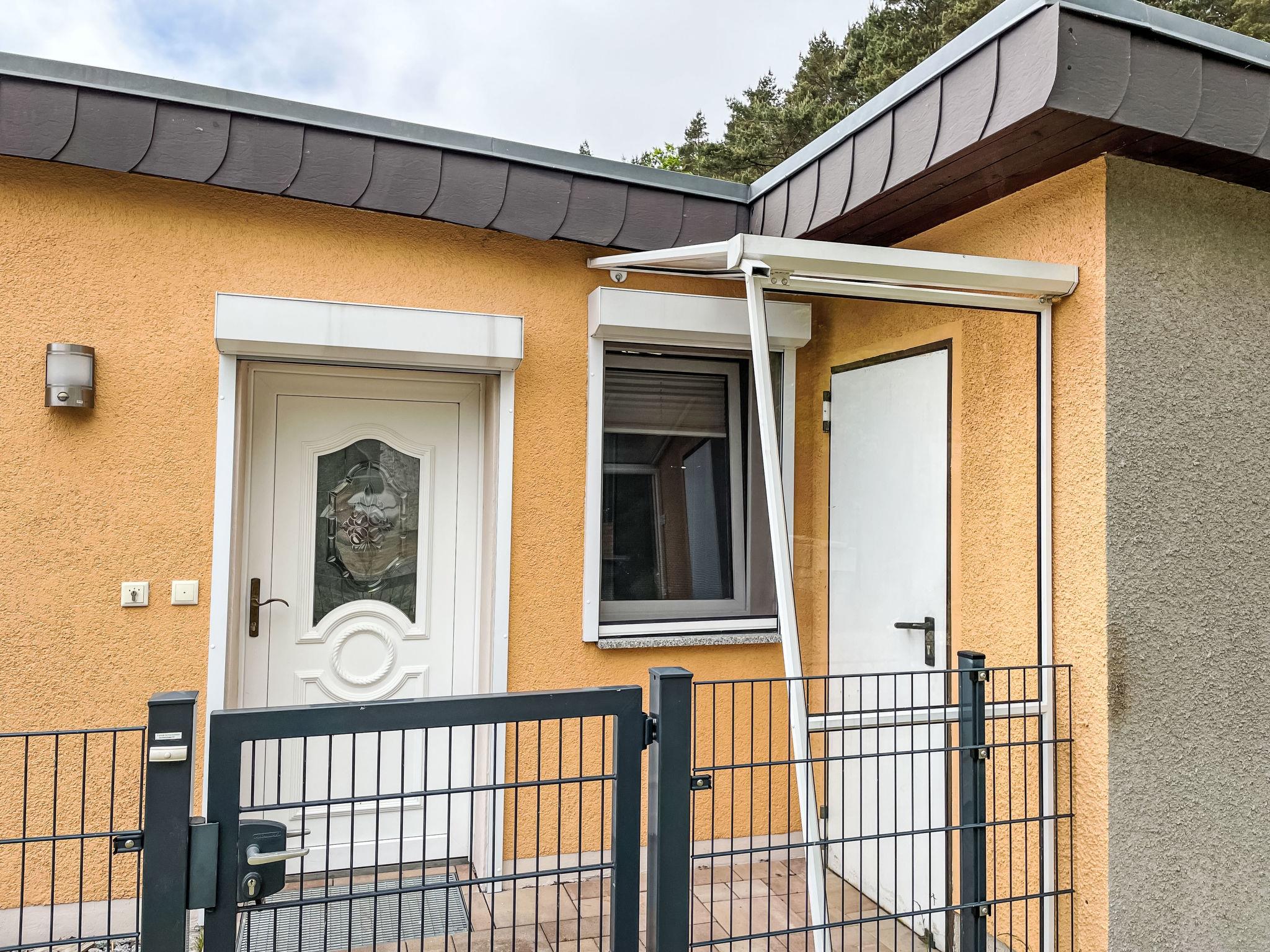 "Ferienhaus Nr. 67", 2-room bungalow 45 m2, on the ground floor. Modern and cosy furnishings: living/dining room with Scandinavian wood stove and satellite TV. Exit to the terrace. 1 room with 1 double bed (180 cm, length 200 cm). Open kitchen (oven, dishwasher, 4 ceramic glass hob hotplates, toaster, kettle, microwave, electric coffee machine). Shower/WC. Gas heating. Terrace 15 m2. Terrace furniture, barbecue, deck chairs (2), conservatory. Beautiful view of the forest. Facilities: washing machine, mosquito net, hair dryer, logs (extra). Internet (WiFi, free). Parking at the house. Please note: non-smoking house. Smoke alarm, fire extinguisher. 10566