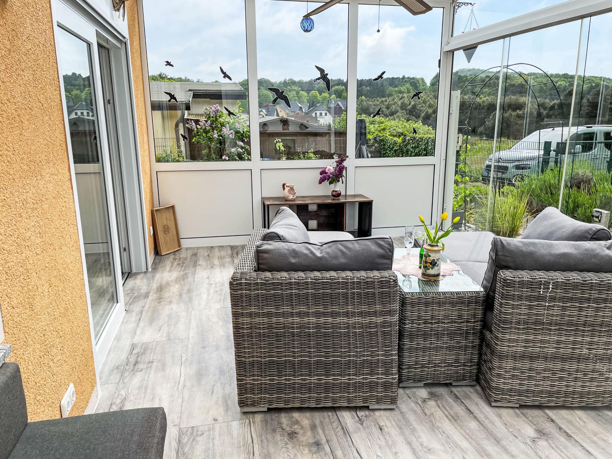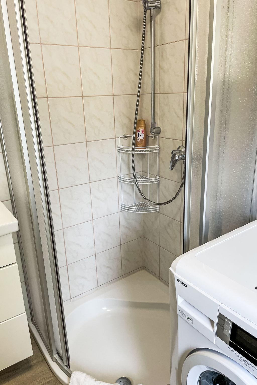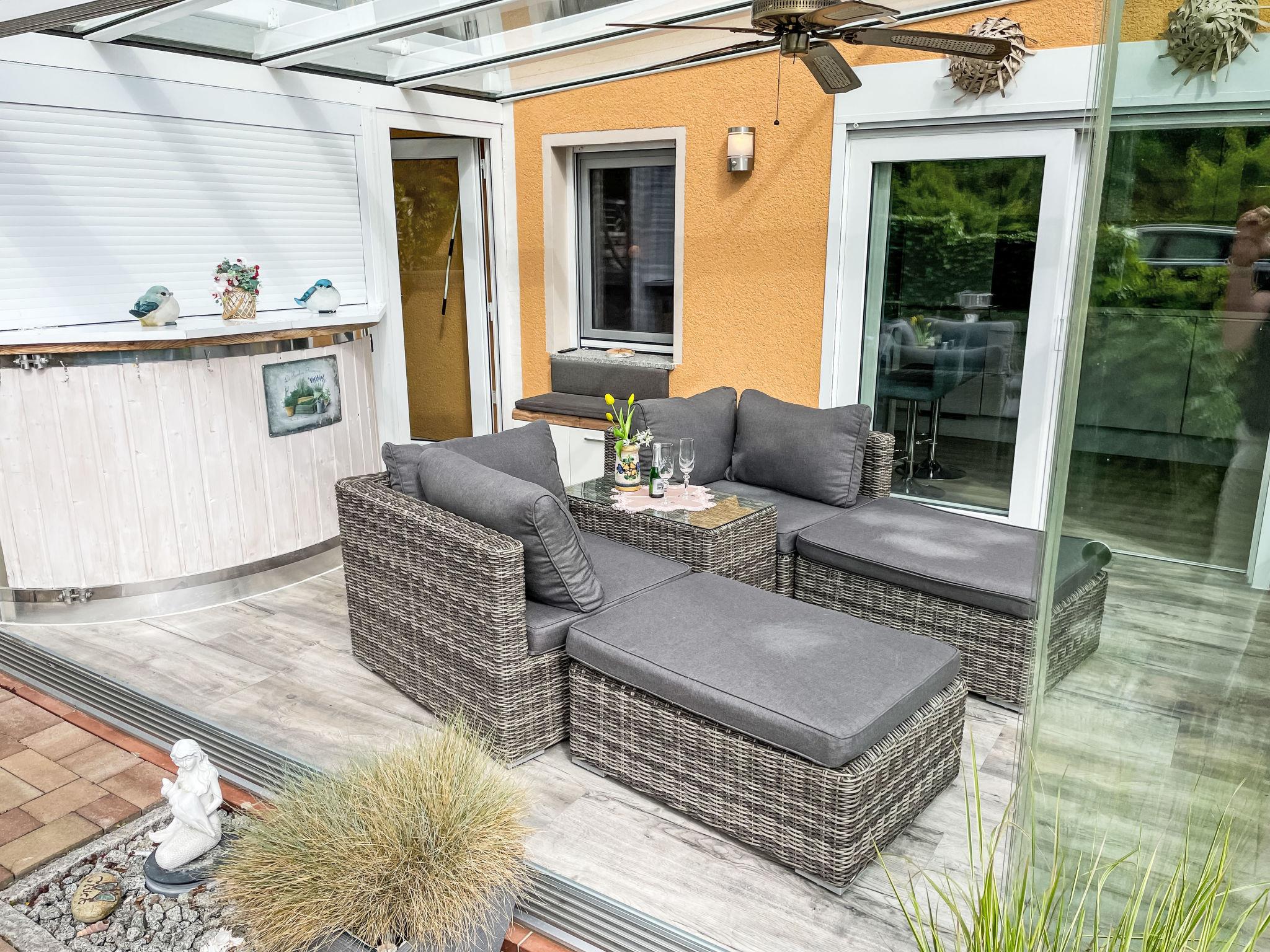 "Ferienhaus Nr. 67", 2-room bungalow 45 m2, on the ground floor. Modern and cosy furnishings: living/dining room with Scandinavian wood stove and satellite TV. Exit to the terrace. 1 room with 1 double bed (180 cm, length 200 cm). Open kitchen (oven, dishwasher, 4 ceramic glass hob hotplates, toaster, kettle, microwave, electric coffee machine). Shower/WC. Gas heating. Terrace 15 m2. Terrace furniture, barbecue, deck chairs (2), conservatory. Beautiful view of the forest. Facilities: washing machine, mosquito net, hair dryer, logs (extra). Internet (WiFi, free). Parking at the house. Please note: non-smoking house. Smoke alarm, fire extinguisher. 10566