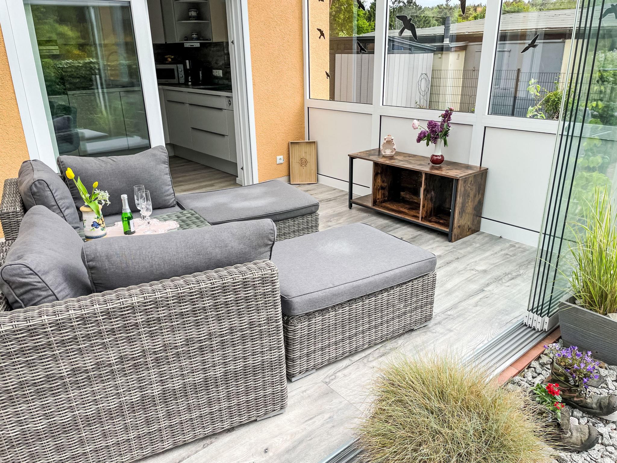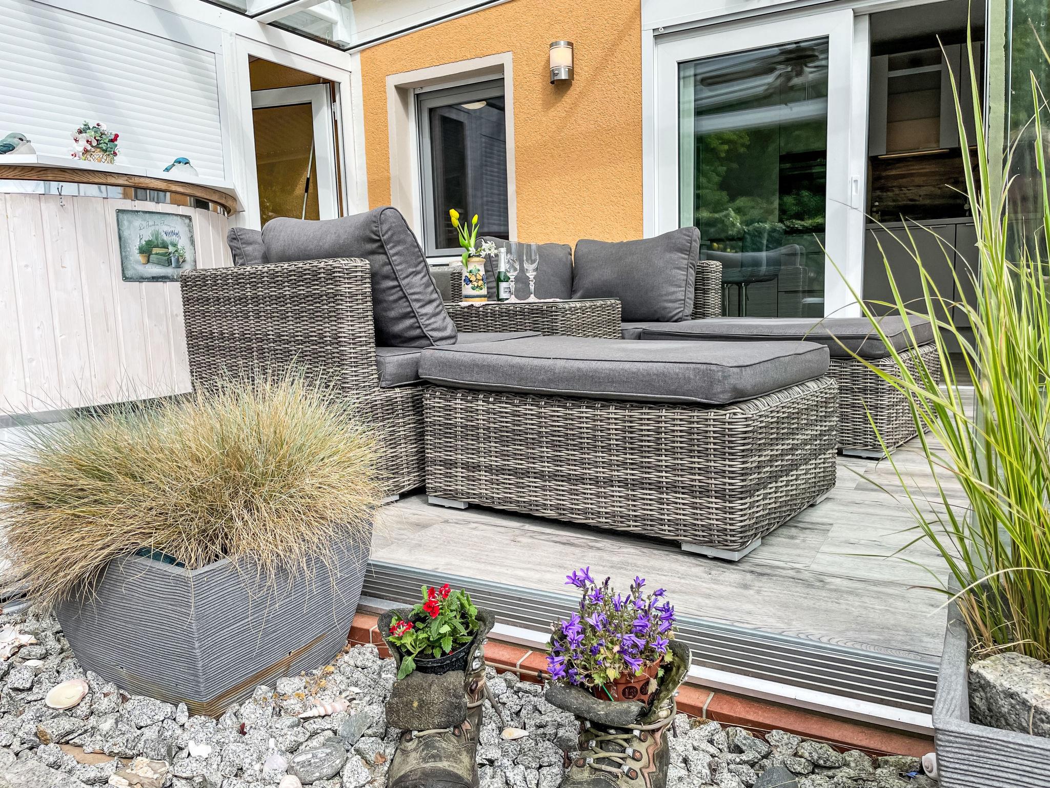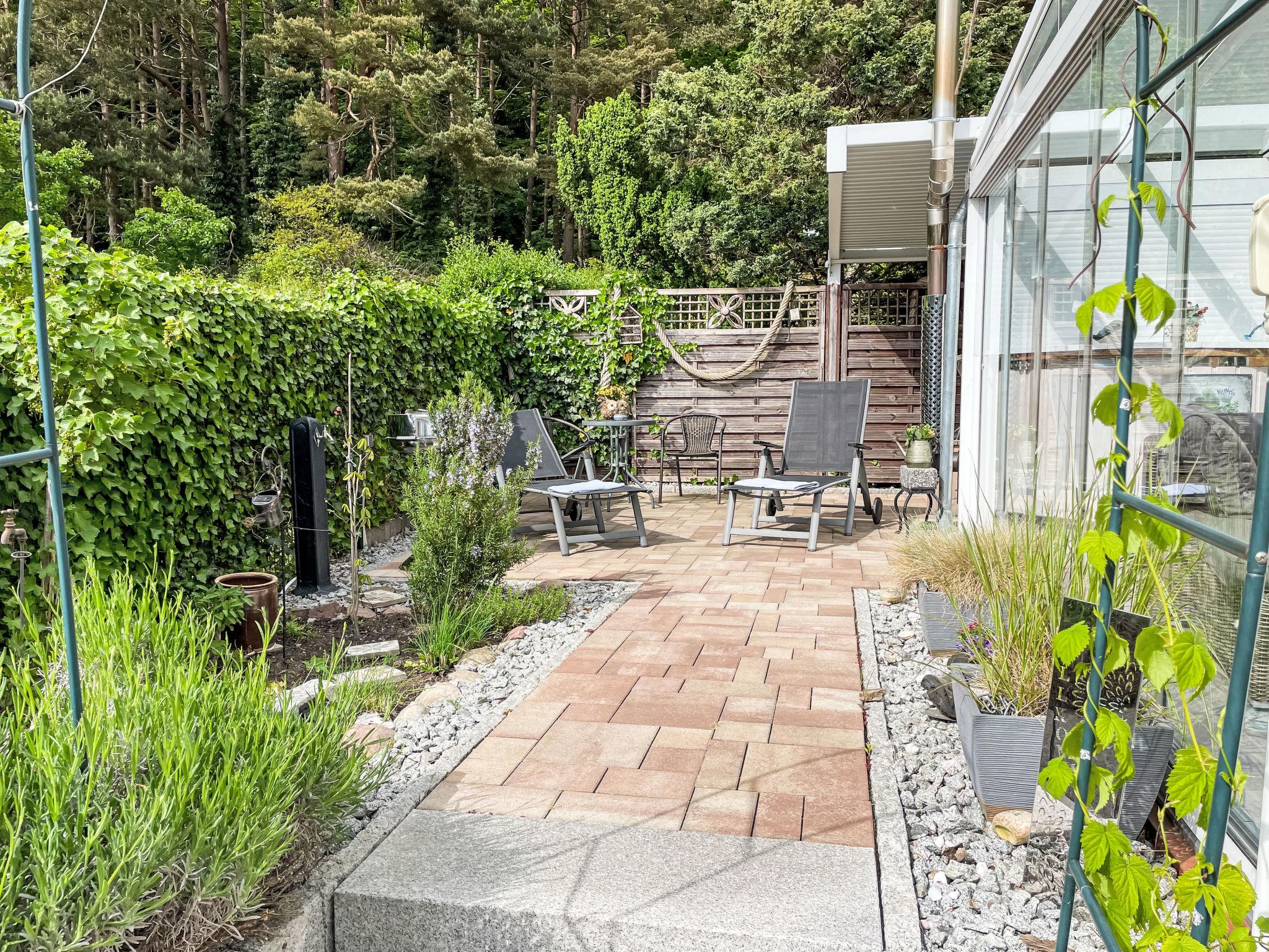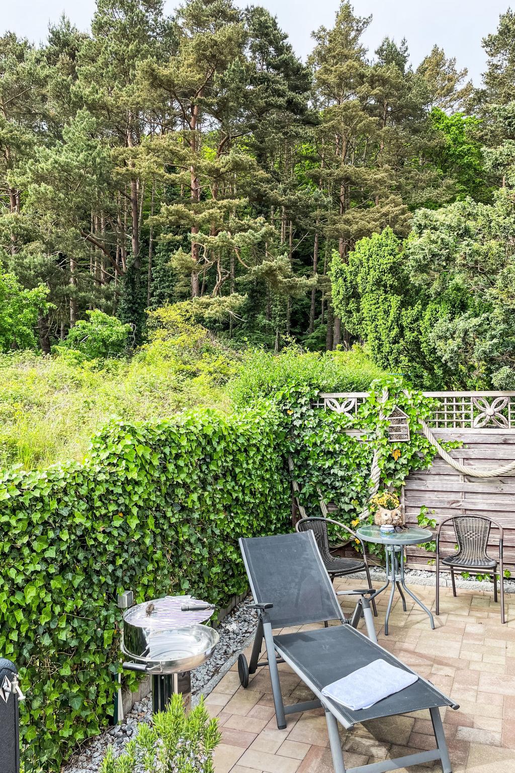 Modern, cosy bungalow "Zum Sonnenhügel", built in 1976, renovated in 2019. On the outskirts, 1 km from the centre of Sellin, 50 m from the edge of the forest, 1.5 km from the sea, 1.5 km from the beach, south facing position. Private: beautiful, well-kept garden (fenced) with lawn and flowers. Shop 850 m, supermarket 1.7 km, bakery 850 m, bus stop "Sellin, Hauptstrasse" 900 m, indoor swimming pool 1.7 km. Sports harbour 1.4 km, walking paths from the house 50 m. Nearby attractions: Seebrücke Sellin 1.5 km, Ostseebad Binz 12 km, Nationalpark Jasmund - Königstuhl 36 km. Fiber optic for fast internet in the home.