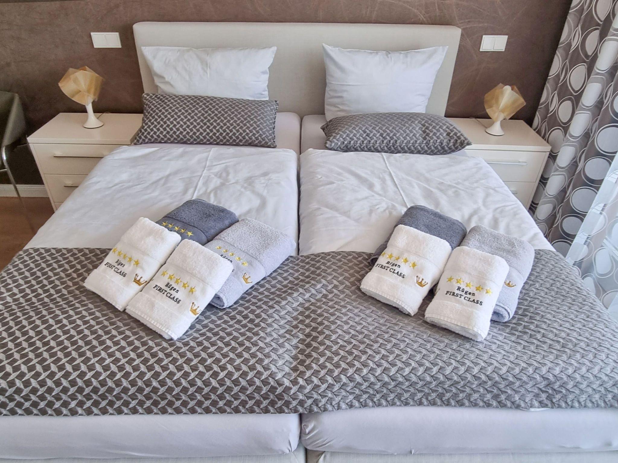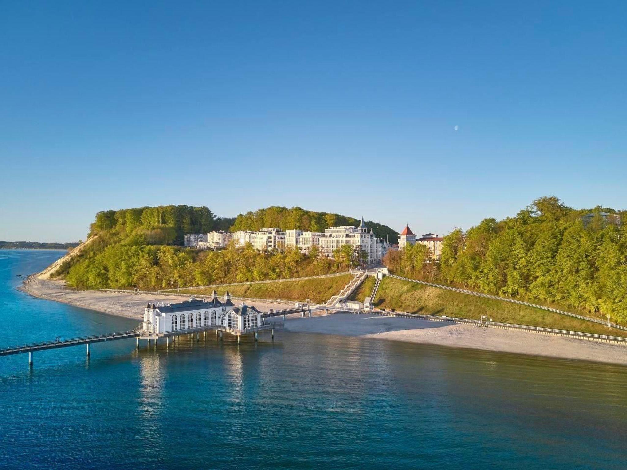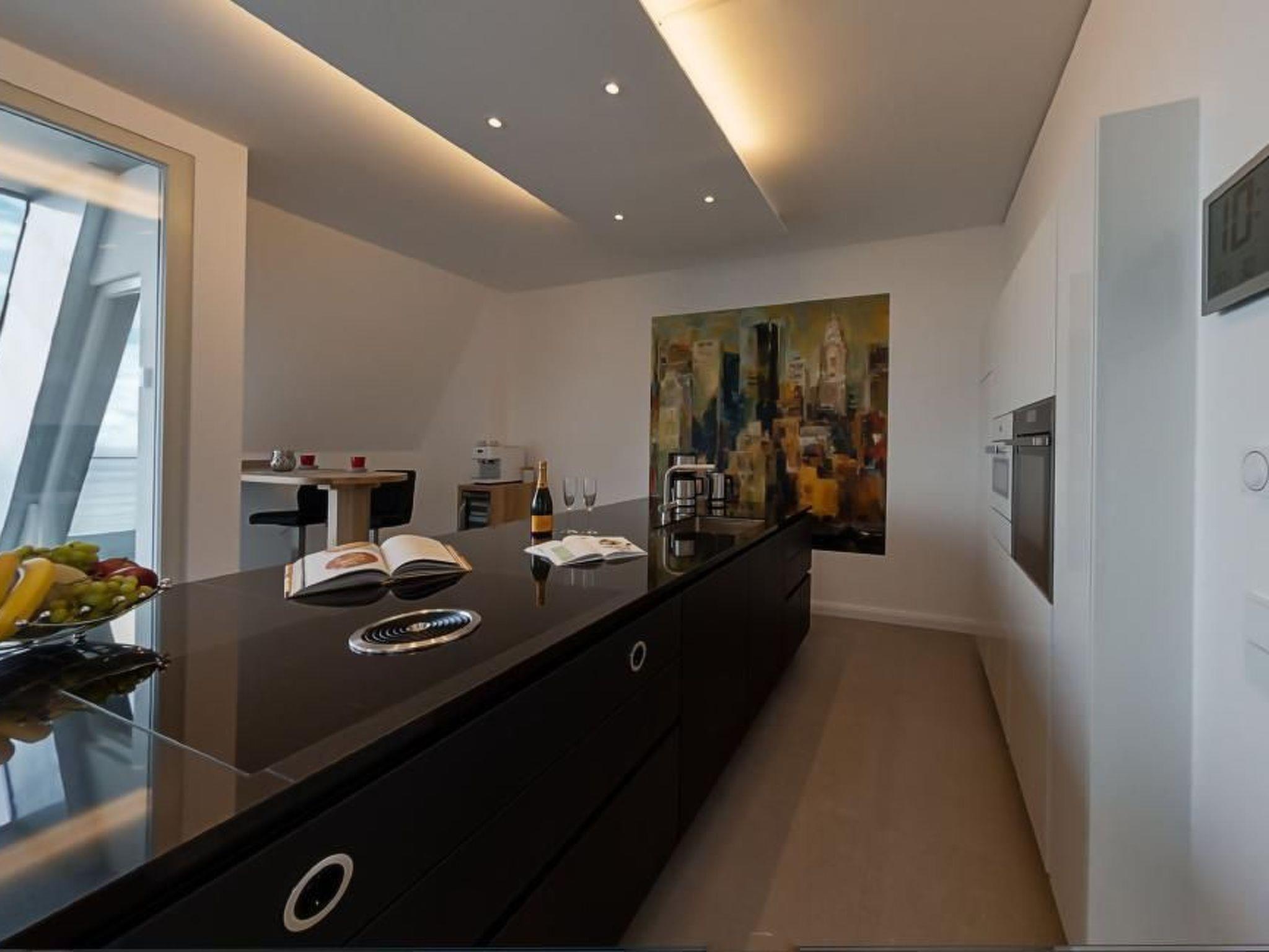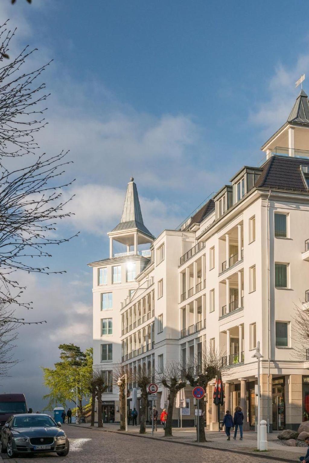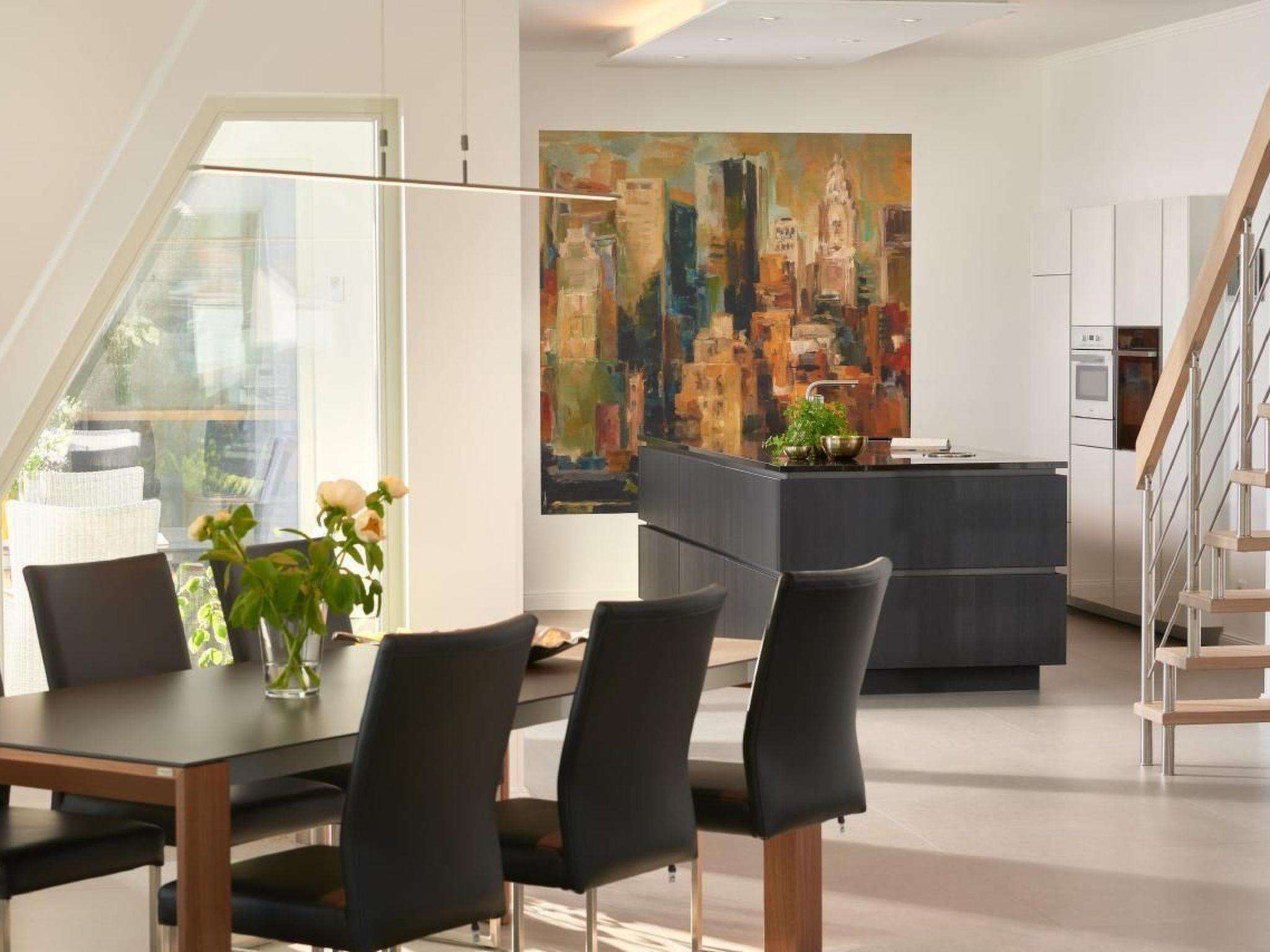The outdoor area is equally impressive and invites you to linger. Enjoy exclusive access to your own roof terrace, which offers 40 m² of space for unrivalled views over the Baltic Sea and the island of Rügen. The terrace, furnished with comfortable lounge furniture, is the perfect place to enjoy the sunset with a glass of wine. Guests also have access to a shared rooftop sky pool with views of the Baltic Sea and a shared outdoor pool as well as various leisure facilities to round off their stay.