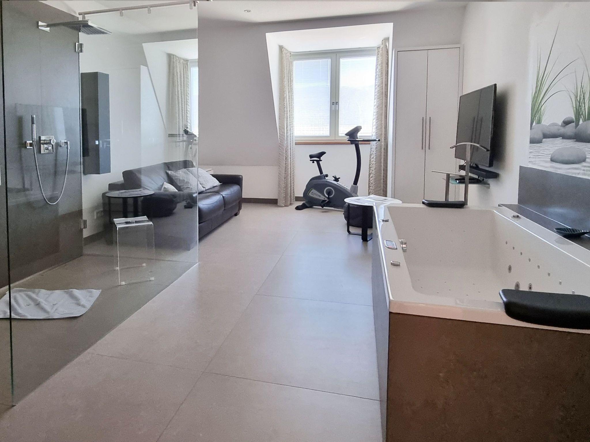 The area surrounding the holiday accommodation offers numerous activities for adventure seekers. Whether golfing, cycling, sailing or diving - there is something for everyone. Bicycle hire allows you to explore the picturesque area independently. And for thrill-seekers, the public spa area, which can be accessed from the private roof terrace, has a skypool to relax in.