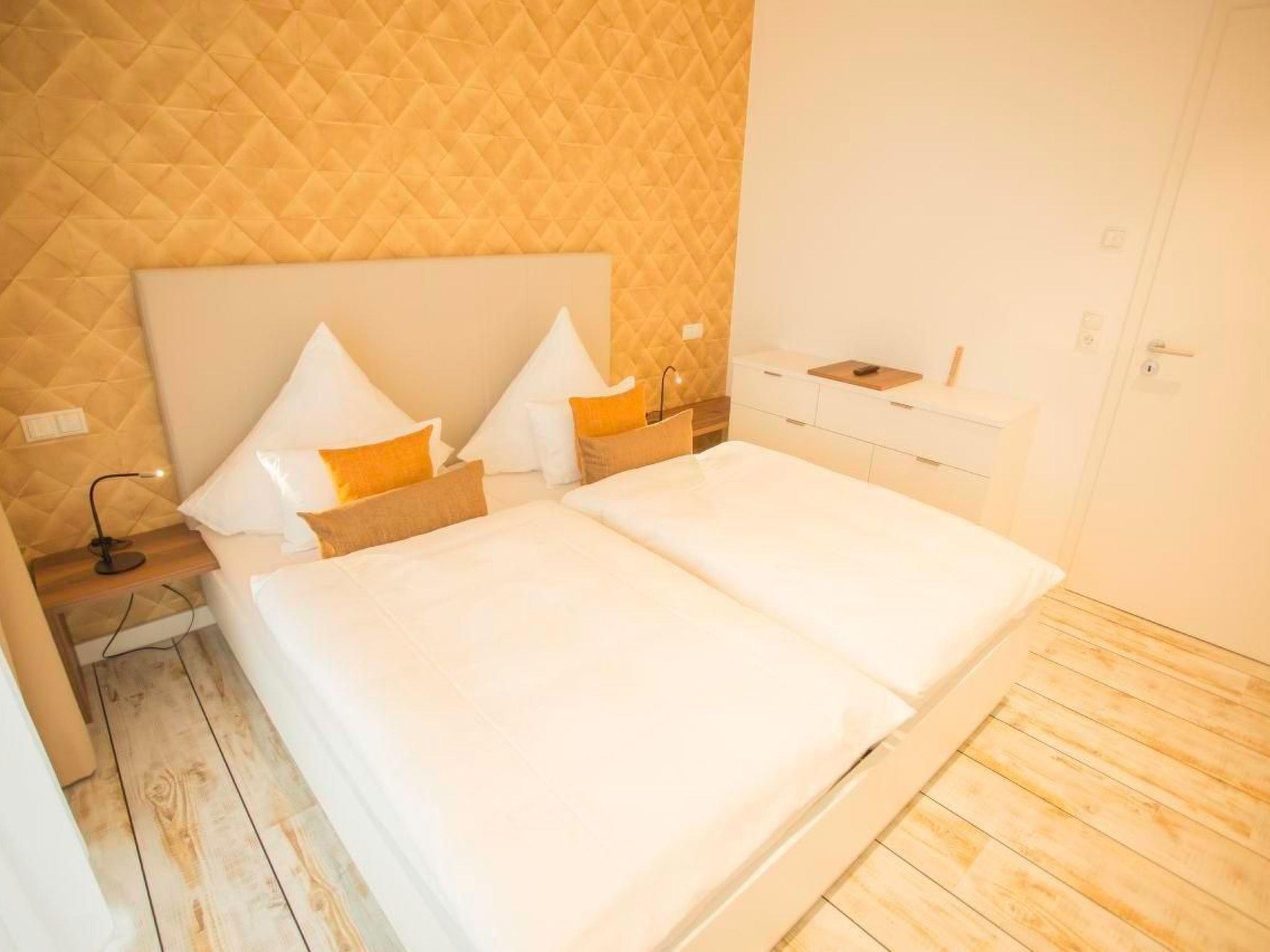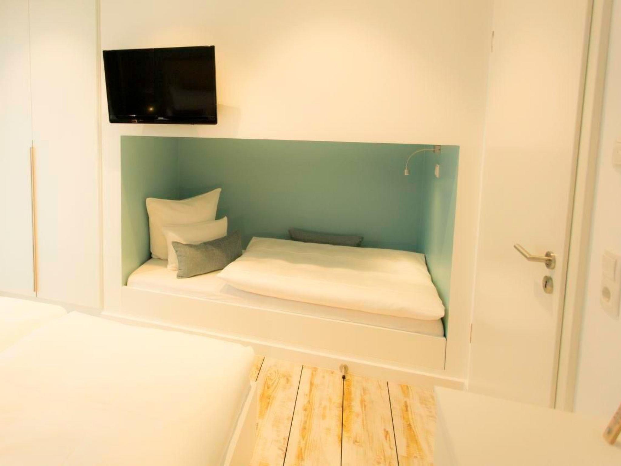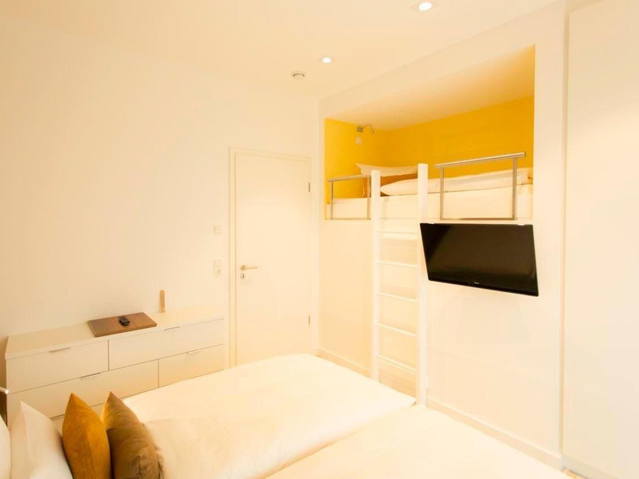 The four bedrooms on the ground floor, each with a double bed, all have a television and internet connection. One bedroom has direct access to the shower-bathroom. Two further bedrooms also offer space for a 3rd person with an additional extra bed. The fourth bedroom also has a cosy sitting area, as well as a kitchenette with a high table and a separate shower/bathroom.