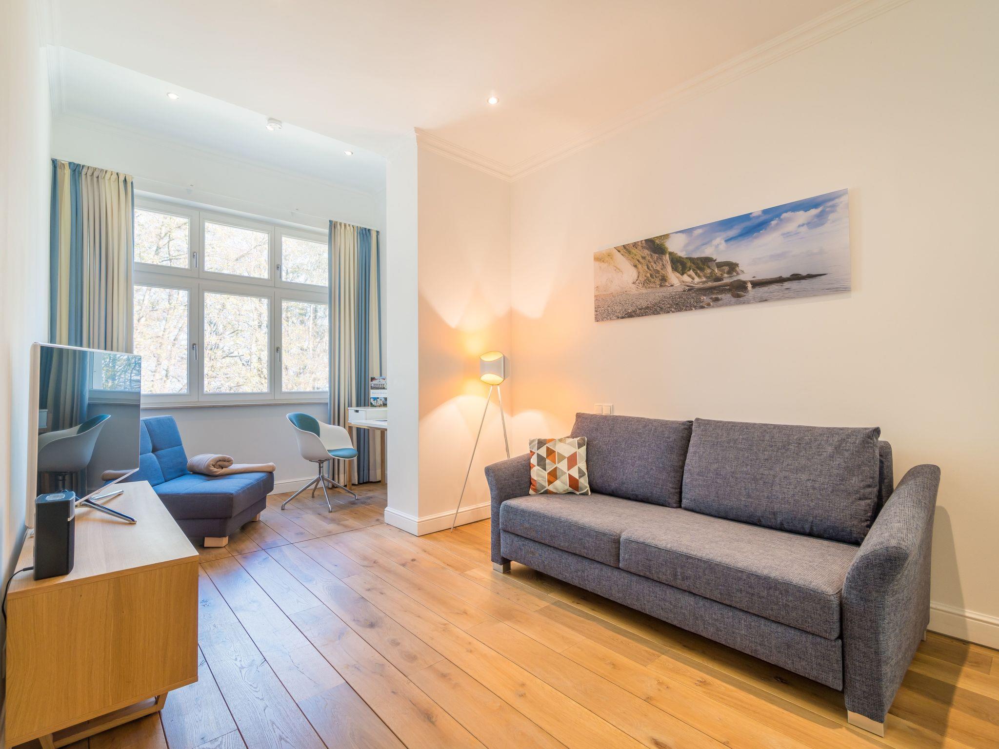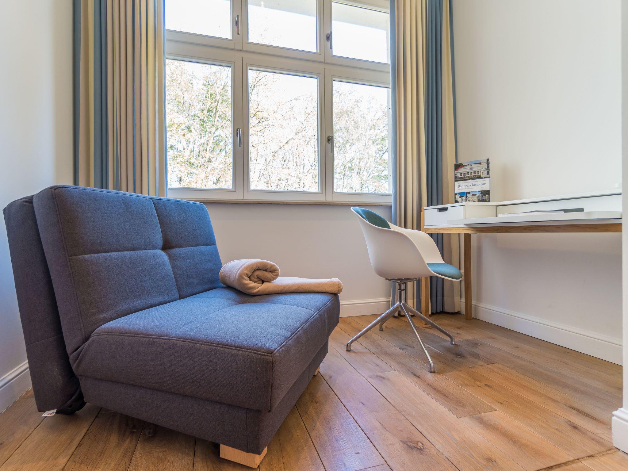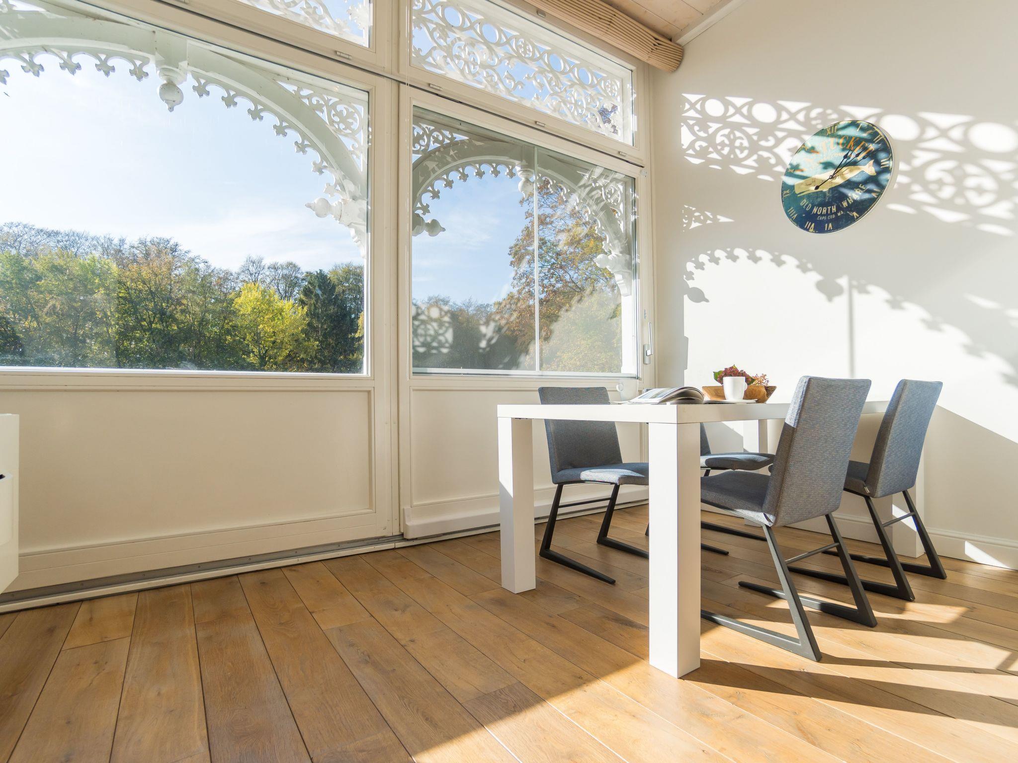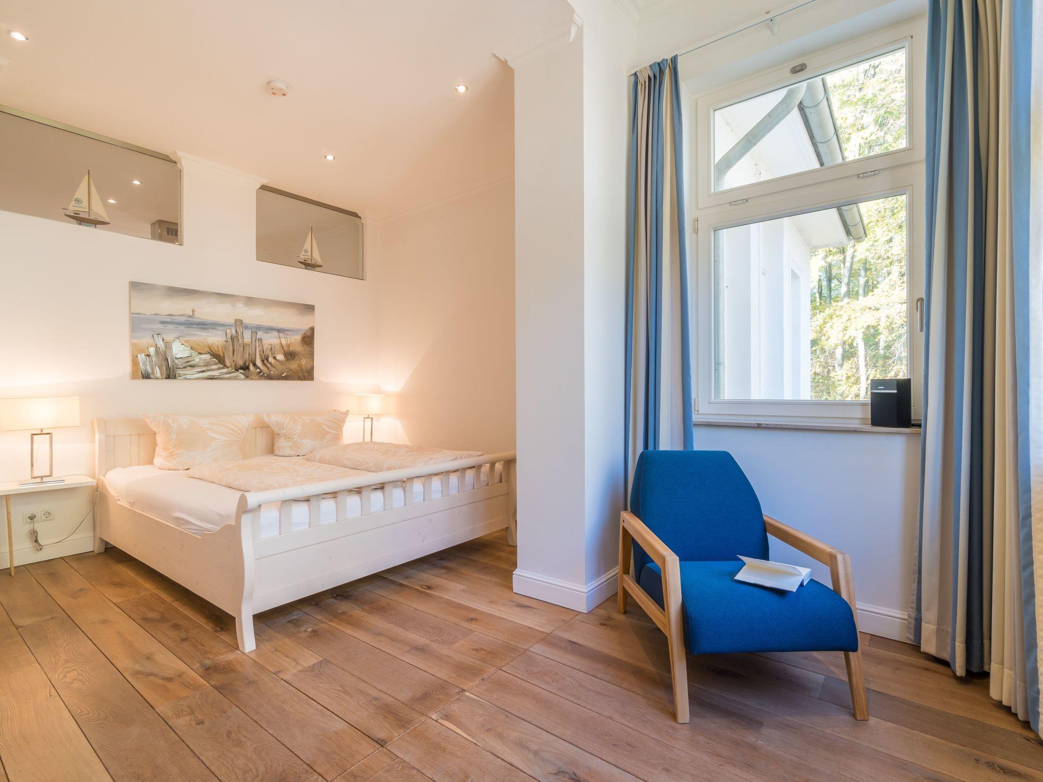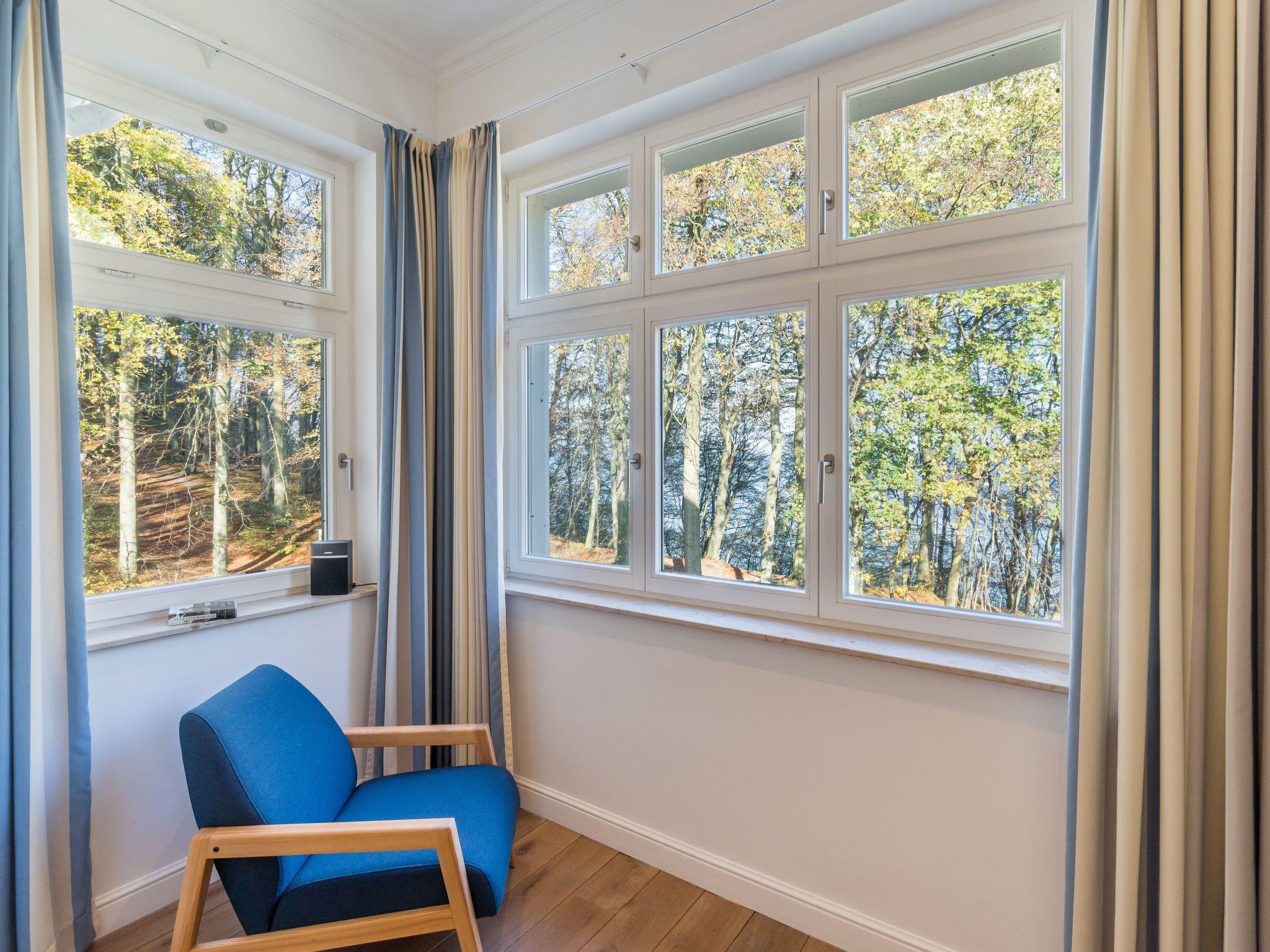 Here you can enjoy a fantastic view of the beech forest and even of the Baltic Sea when the leaves change colour in the winter months. When the window is open, the sound of the sea is unmistakable. The daylight that floods in ensures a pleasant and exclusive feel-good atmosphere at all times.