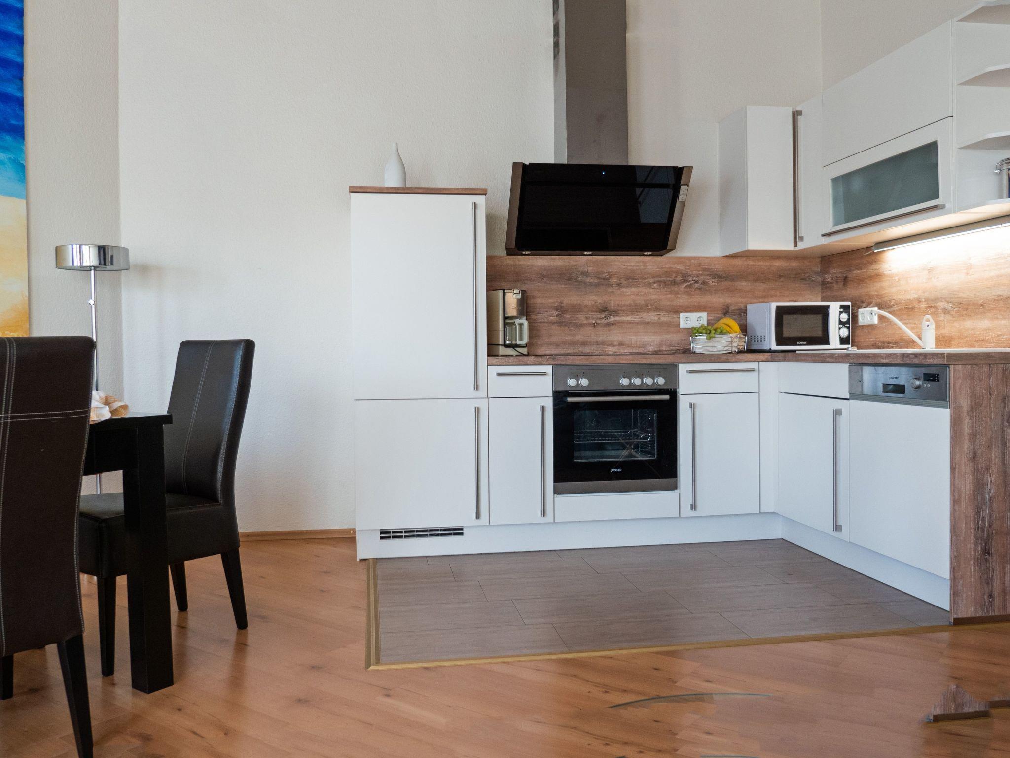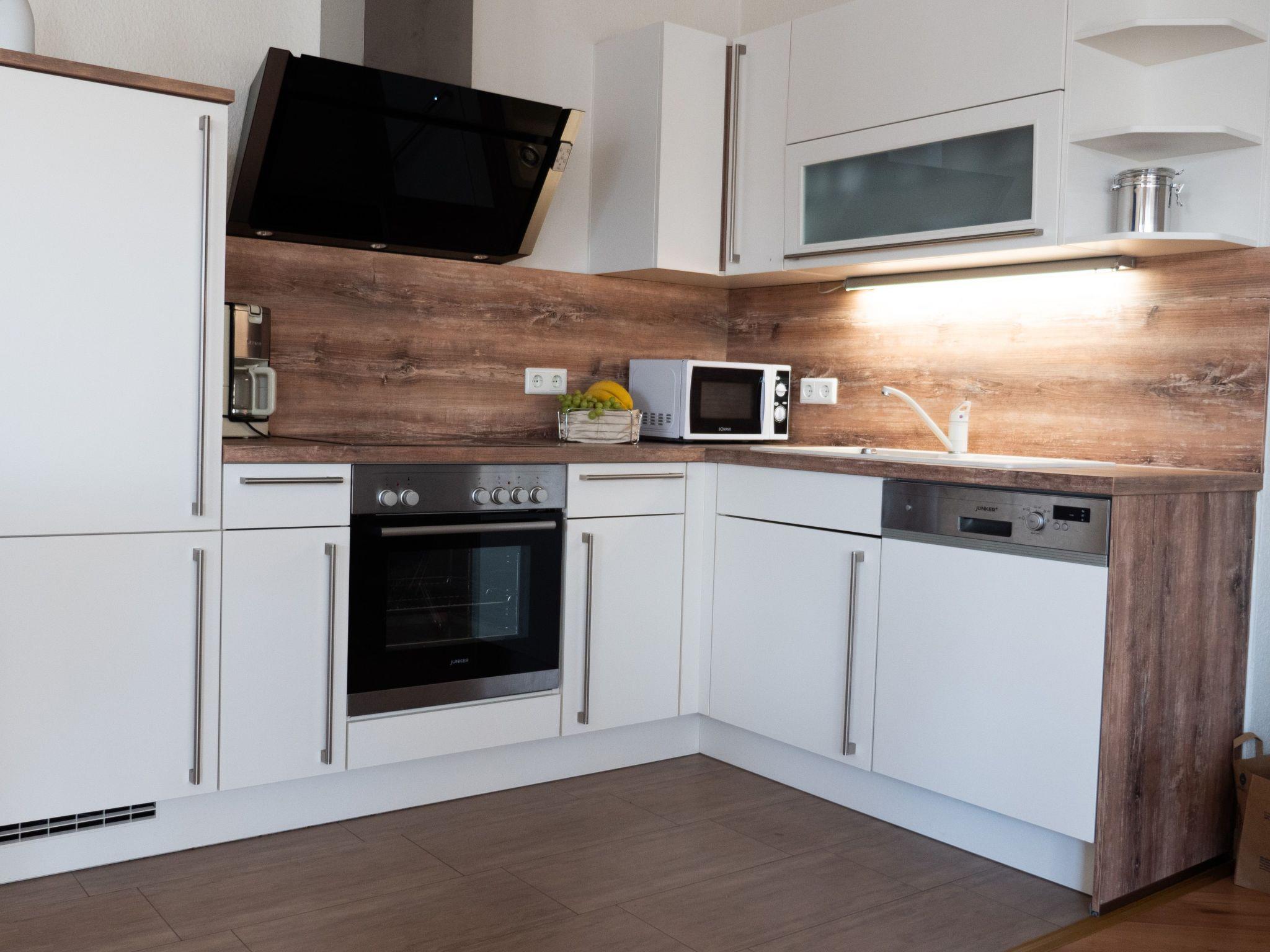 Integrated eat-in kitchen, well equipped with dishwasher, microwave, oven and coffee machine