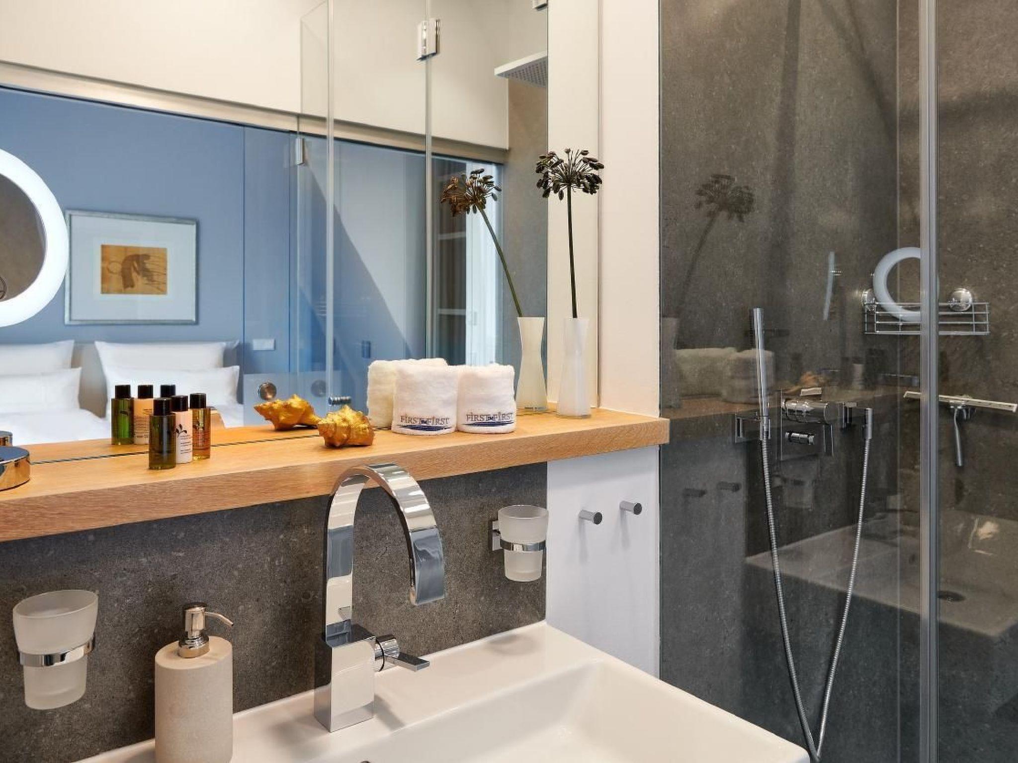 Your luxurious holiday home "FIRST im FIRST" with four exceptionally and individually designed penthouse flats is in a prime location in Sellin's Wilhelmstraße, the magnificent promenade with villas from the original period of spa architecture and directly in front of the famous Sellin pier.