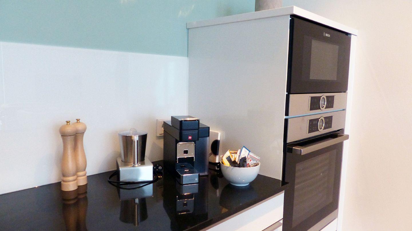 KÜCHE // offene Küche, 4-Platten Induktionsherd, Spülmaschine, Kühlschrank mit Gefrierfach, Backofen, Mikrowelle, Toaster, Wasserkocher, Kaffeemaschine, reichlich Besteck, Geschirr und Küchenutensilien ++