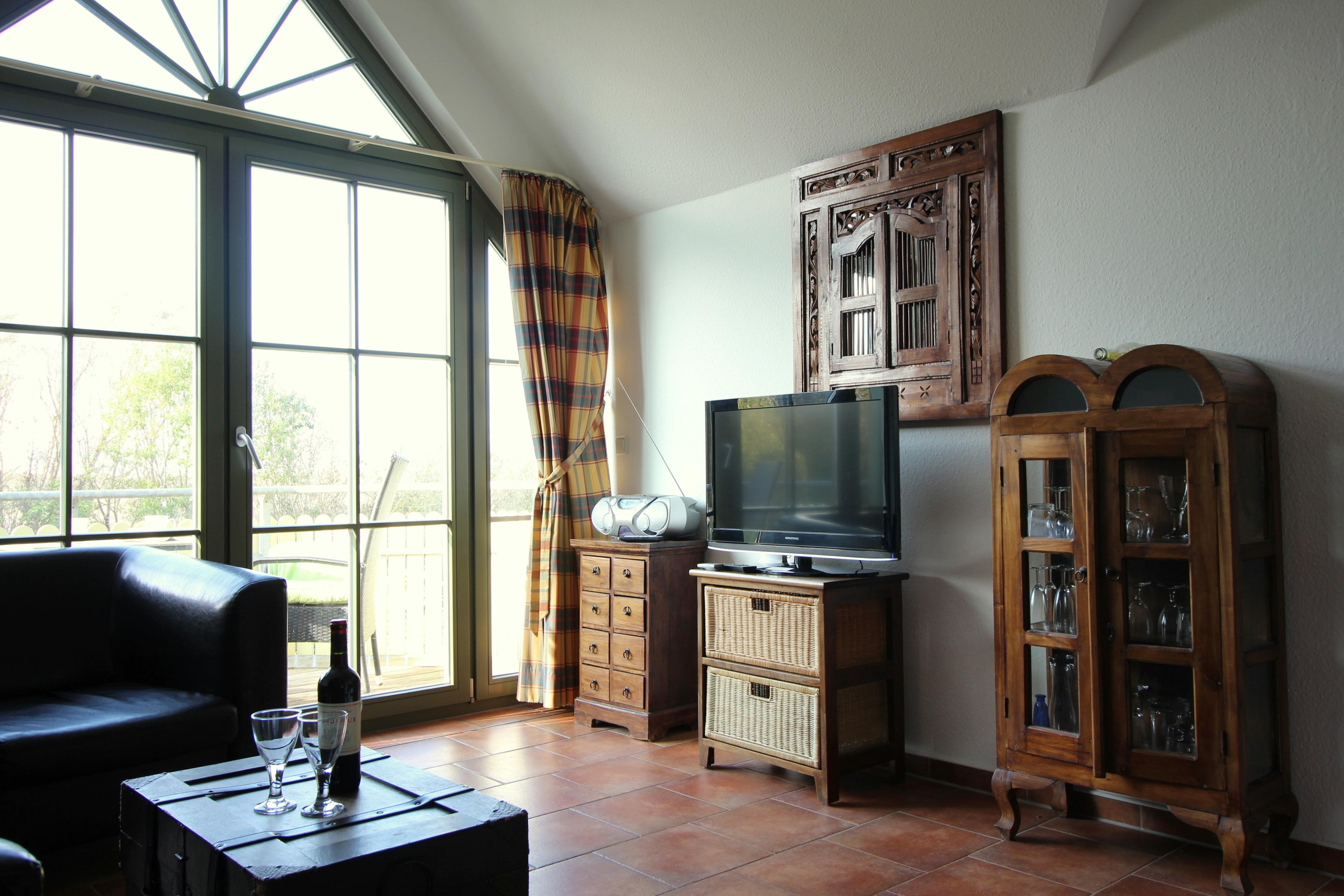 In dem gemütlich eingerichtetem Wohnzimmer stehen Ihnen ein Kamin zur Verfügung. Auf gleicher Ebene befindet sich eine große voll ausgestattete Küche. Angrenzend befindet sich die Essecke für 4 Personen. Das Wohnzimmer hat große Fenster . Von hier haben Sie einen direkten Zugang zum Balkon . Hier können Sie einen schönen Strandtag bei einem leckeren Aperitif ausklingen lassen .