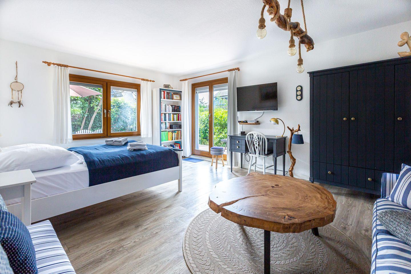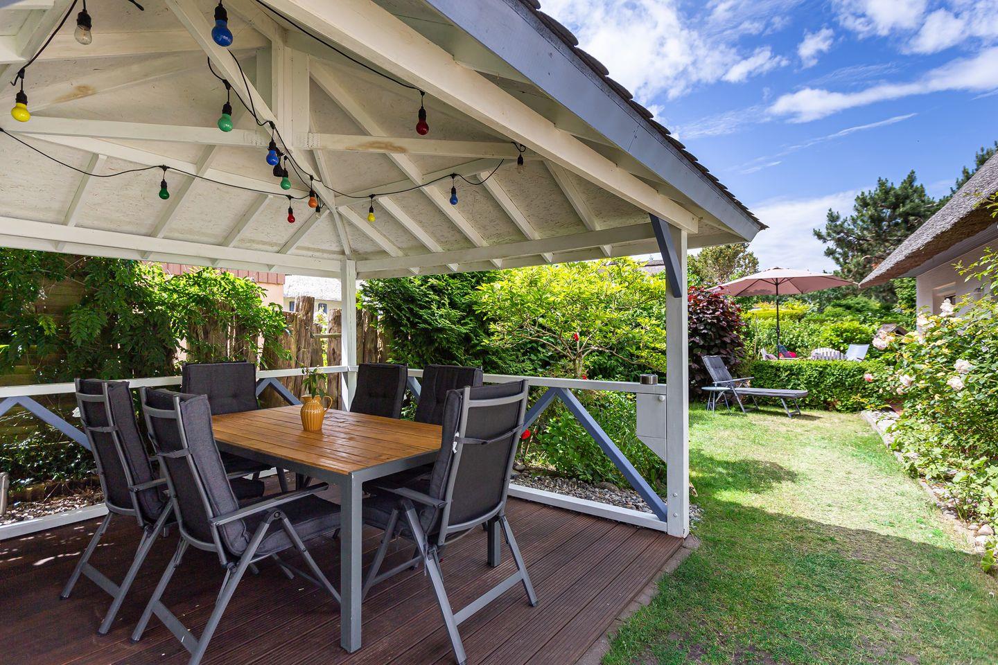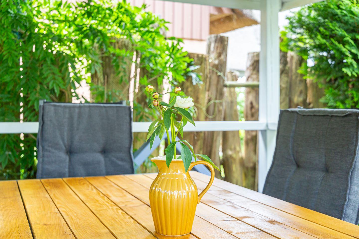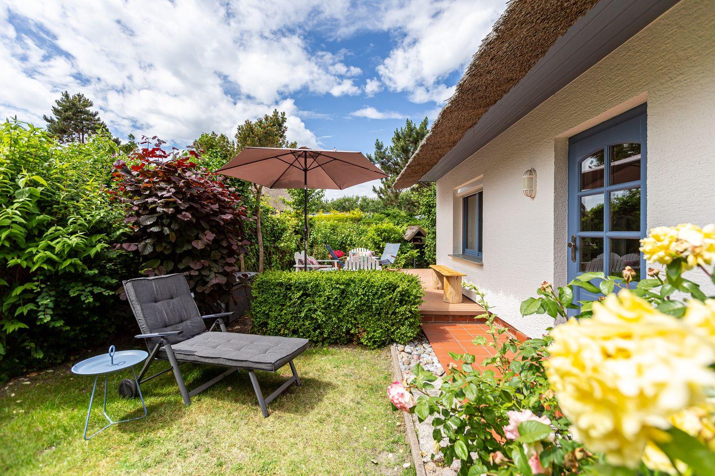 Auf dem 800 Quadratmeter großen und sehr liebevoll angelegten Grundstück befinden sich heimischen Pflanzen, sonnige und schattige Plätze, ein Strandkorb, eine Tischtennisplatte, ein Sandkasten für die Kleinen sowie zwei Außenterrassen (eine davon überdacht). Vier Sonnenliegen und eine Hängematte versprühen zusätzliches Urlaubs-Feeling und laden zu relaxten Stunden im Garten ein. Mit dem Weber-Elektrogrill kannst du zudem tolle Sommer-Barbecues für die ganze Familie veranstalten. Des Weiteren steht dir ein Gartenhäuschen zur Verfügung, welches beispielsweise Platz für Kinderwagen und Strand-Bedarf bietet. Ein Strand-Buggy steht bereits drinnen und kann kostenfrei während des Urlaubs von dir genutzt werden.