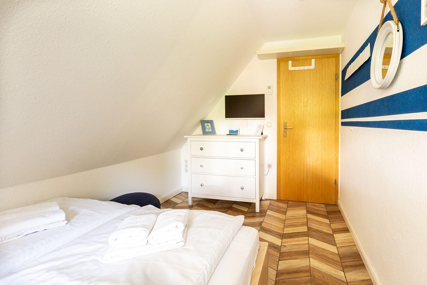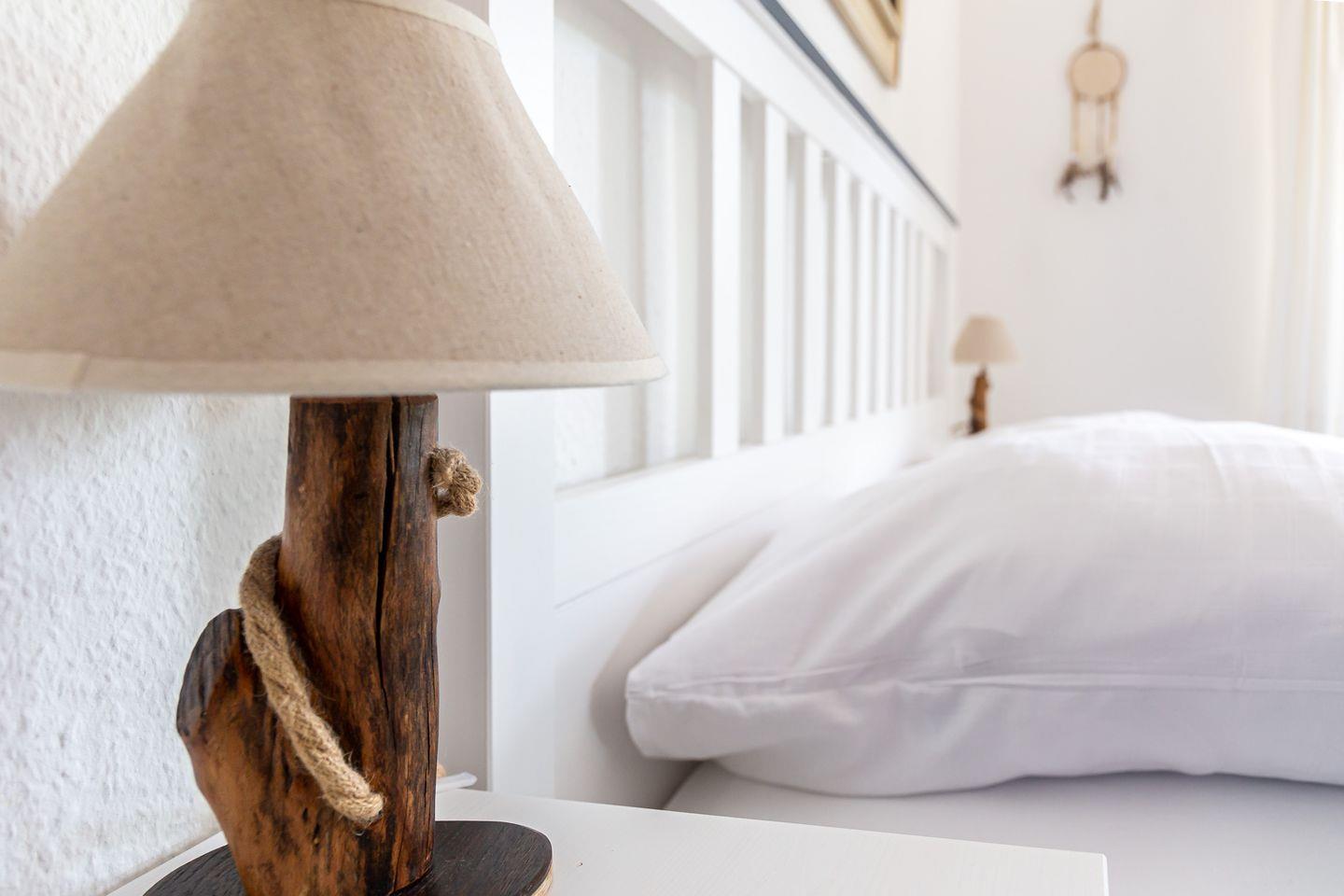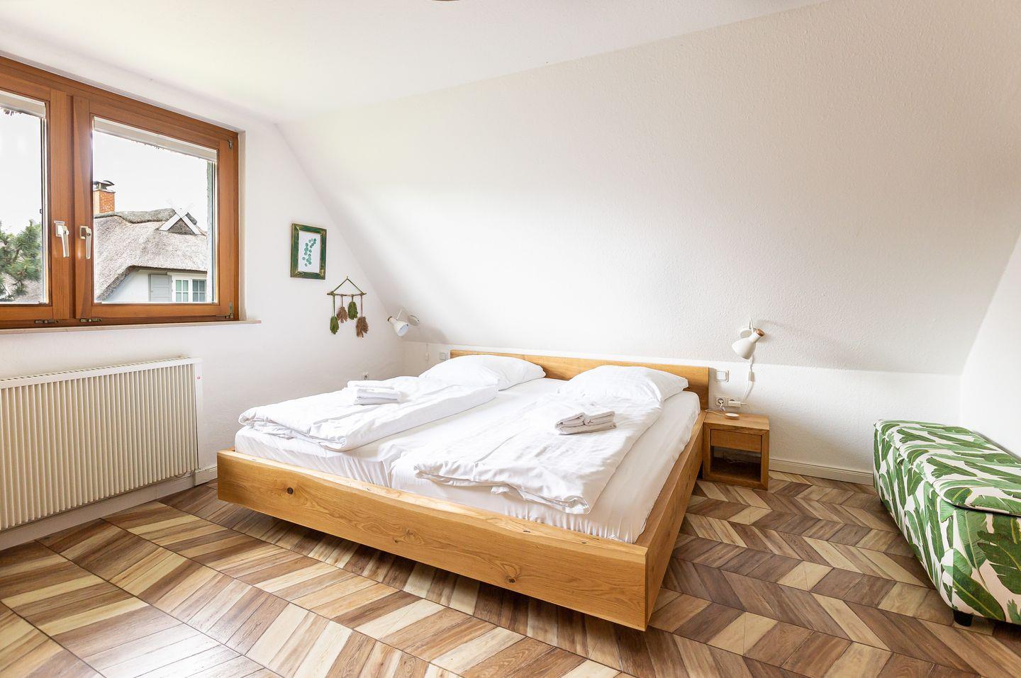 Im Erdgeschoss erwartet dich ein kleiner Eingangsbereich, ein Schlafzimmer mit Doppelbett (160 cm) und Austritt zu einer der zwei Terrassen, ein Bad mit Dusche/WC sowie die separate Landhaus-Küche. Der massiv gebaute Wintergarten wurde als Wohnbereich mit gemütlicher Sitzecke und viel Liebe zum Detail eingerichtet. Von hieraus gelangst du in die angeschlossene Küche sowie in den Garten. Das Obergeschoss beherbergt ein Schlafzimmer mit einem großen Doppelbett und einem separaten Kinderbett in West-Ausrichtung, ein weiteres Schlafzimmer mit einem Doppelbett sowie ein Bad mit Badewanne/WC.