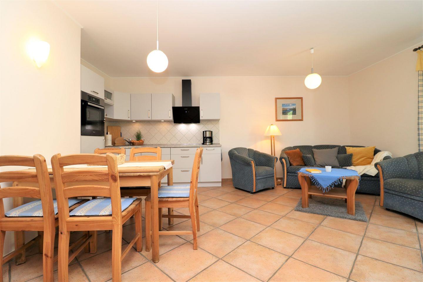 Dieses Appartement für maximal 4 Personen bietet auf gemütlichen 70 m² alles für einen erholsamen Urlaub. Es befindet sich in einer ruhigen Lage und verfügt über eine Terrasse mit Westausrichtung, auf der Sie den Nachmittag und Abend in der Sonne genießen können. Das Appartement besteht aus einem Wohnzimmer mit einer integrierten Küchenzeile und einem Kamin, der für eine behagliche Atmosphäre sorgt. Das Schlafzimmer ist mit einem Doppelbett ausgestattet, während das zweite Schlafzimmer mit Einzelbetten für eine komfortable Unterbringung sorgt. Das Badezimmer ist mit einer Dusche und einem WC ausgestattet und bietet zusätzlich eine Sauna, die für zusätzlichen Komfort sorgt – ideal zum Entspannen nach einem aktiven Tag. Ein Pkw-Stellplatz befindet sich direkt auf dem Grundstück und sorgt für bequemen Zugang. Haustiere sind in diesem Appartement nicht gestattet, und das Rauchen ist ebenfalls nicht erlaubt. WLAN ist in diesem Appartement leider nicht verfügbar. Dieses Appartement ist der perfekte Ort, um Ruhe zu finden und die Natur zu genießen – ideal für eine kleine Auszeit an der Ostsee!