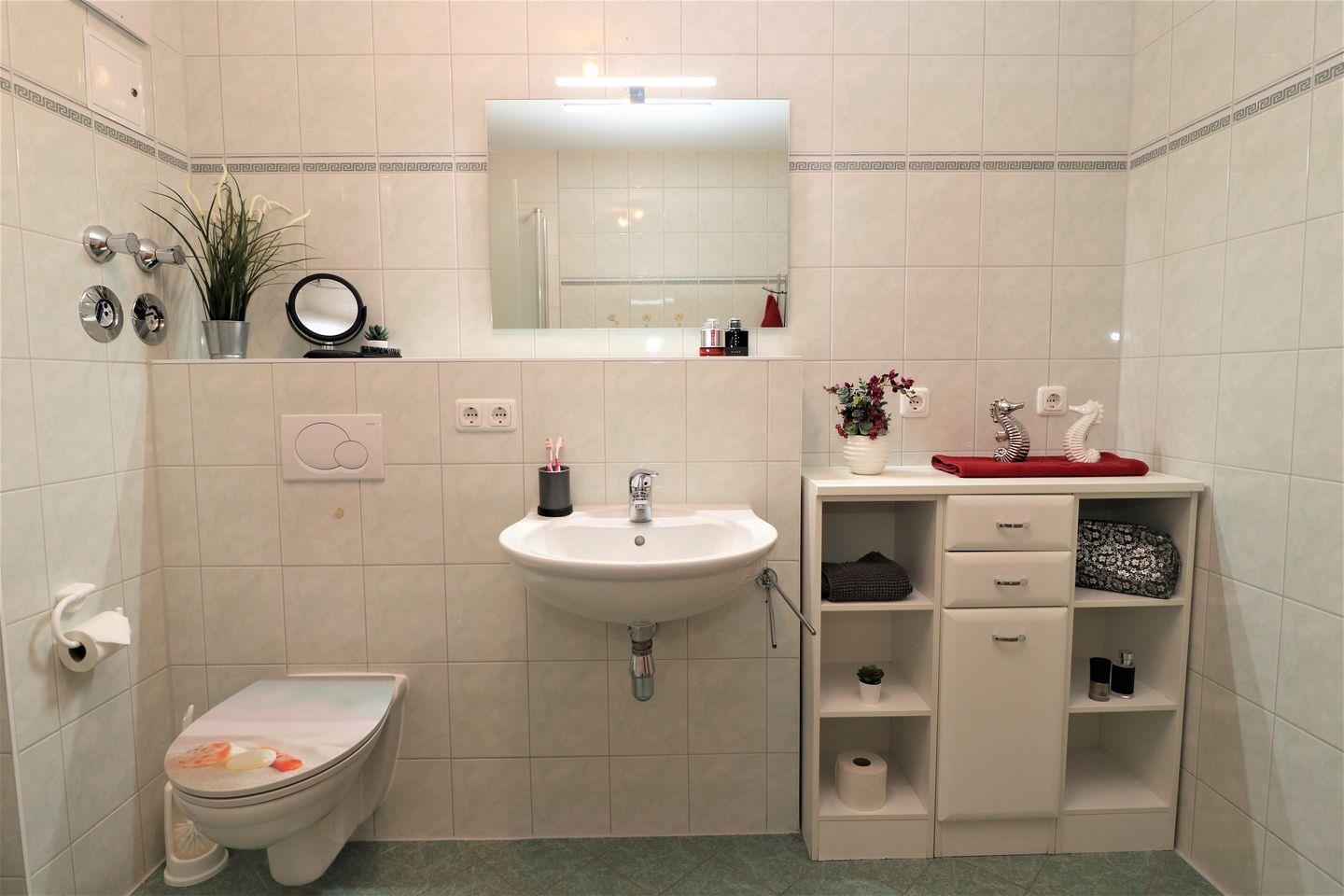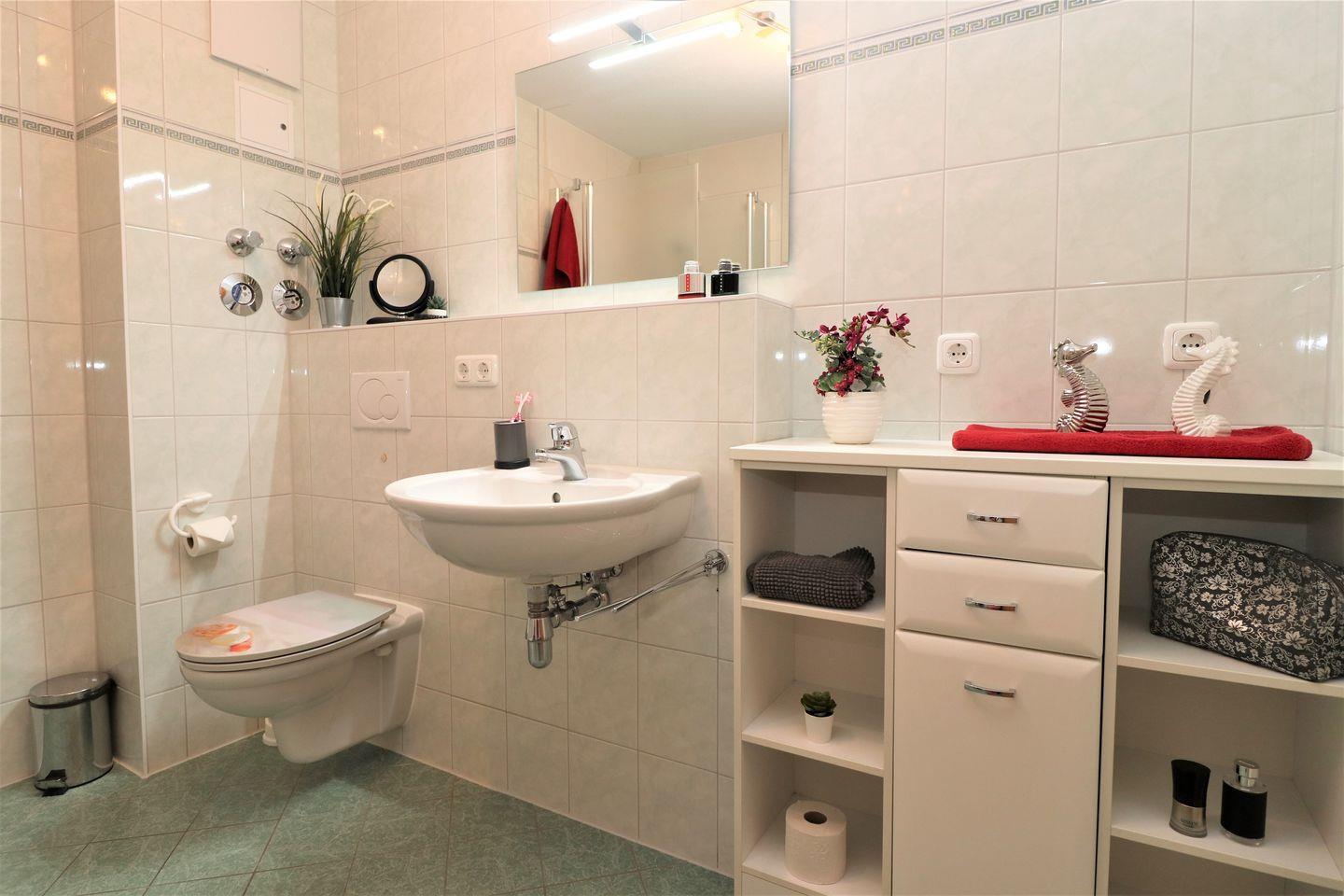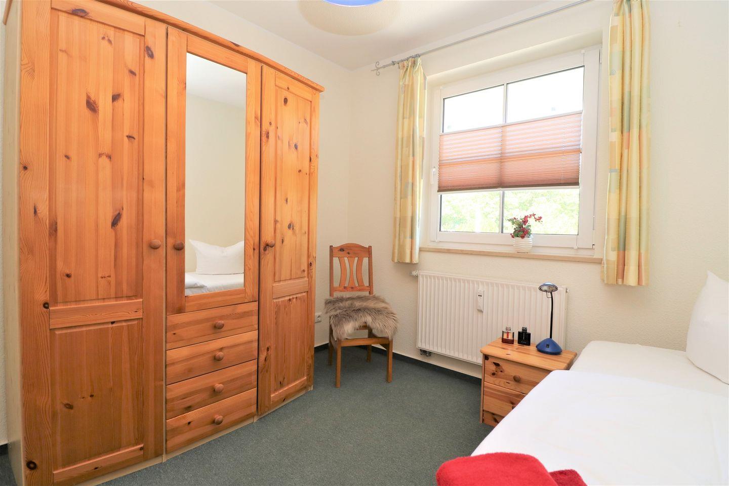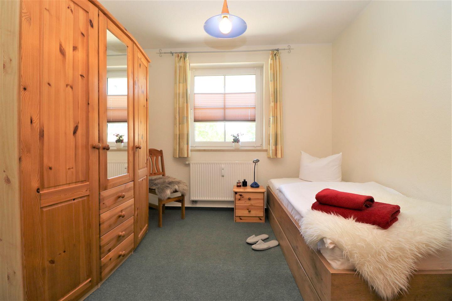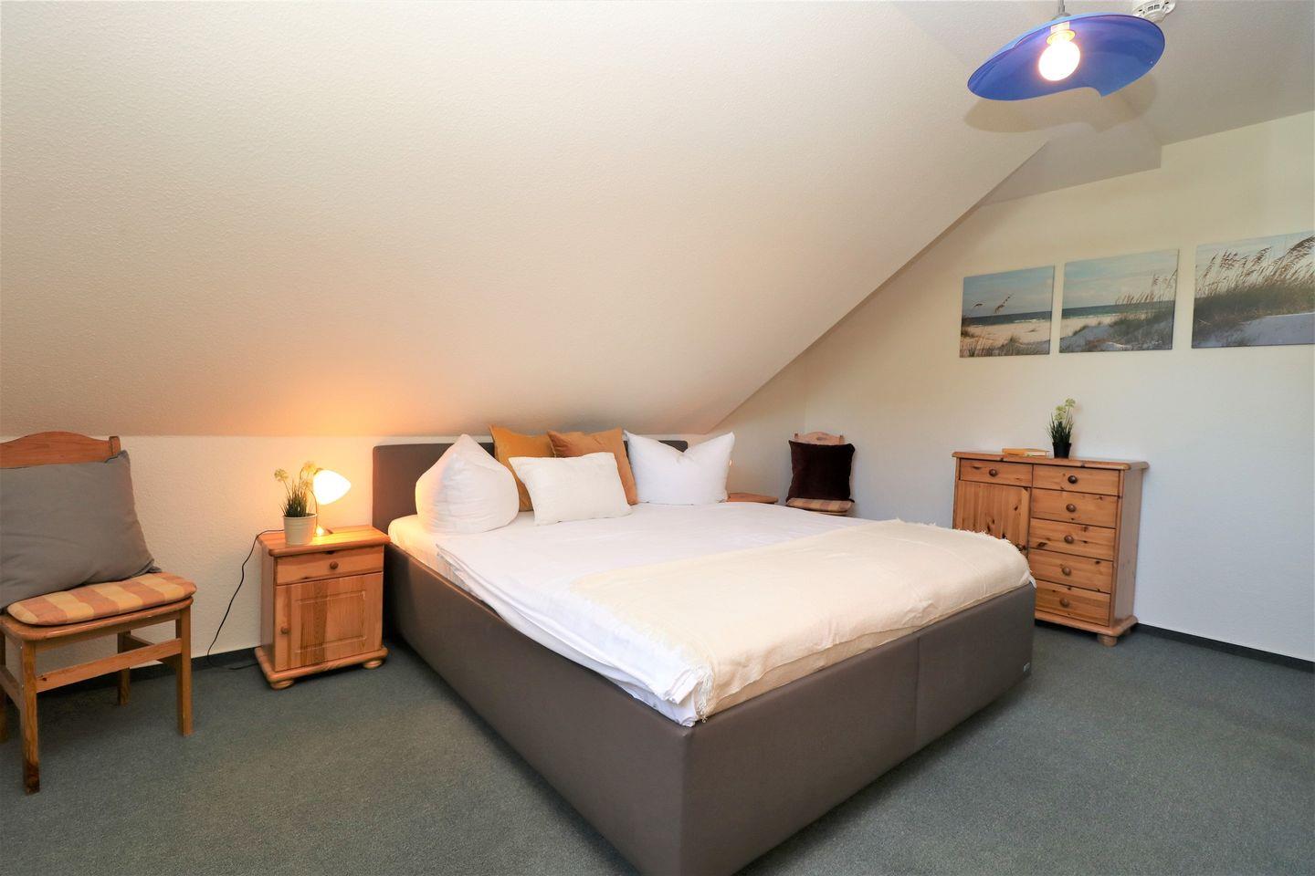 Dieses geräumige Appartement im Obergeschoss bietet auf ca. 71 m² Platz für maximal 4 Personen und ist ideal für Familien oder Paare, die auf der Suche nach einer komfortablen und ruhigen Unterkunft sind. Das Wohnzimmer ist mit einer integrierten Küchenzeile ausgestattet, die alles bietet, was Sie für eine Selbstverpflegung benötigen. Der gemütliche Wohnbereich lädt zum Entspannen ein, während Sie eine Mahlzeit zubereiten oder einfach nur die Zeit genießen. Der große Ostbalkon bietet viel Platz und einen schönen Blick – perfekt, um die Morgensonne oder ein entspanntes Frühstück im Freien zu genießen. Das Schlafzimmer ist mit einem gemütlichen Doppelbett ausgestattet, ideal für erholsame Nächte. Das zweite Schlafzimmer bietet ein Tandembett, das sowohl für Erwachsene als auch für Kinder geeignet ist und flexibel genutzt werden kann. Das Badezimmer ist mit einer Dusche und einem WC ausgestattet und bietet alles, was Sie für Ihren täglichen Komfort benötigen. Für Ihre Bequemlichkeit steht Ihnen WLAN zur Verfügung, sodass Sie jederzeit Zugriff auf das Internet haben – ob für die Planung von Ausflügen oder um mit der Außenwelt in Kontakt zu bleiben. Der PKW-Stellplatz Nr. 20 befindet sich direkt auf dem Grundstück, sodass Sie Ihr Fahrzeug sicher abstellen können. In diesem Appartement sind Haustiere nicht gestattet, ebenso wie das Rauchen. Dieses Appartement bietet Ihnen den perfekten Raum für einen erholsamen Urlaub, mit einem großzügigen Platzangebot und einer ruhigen Atmosphäre – ideal für Ihren Aufenthalt.