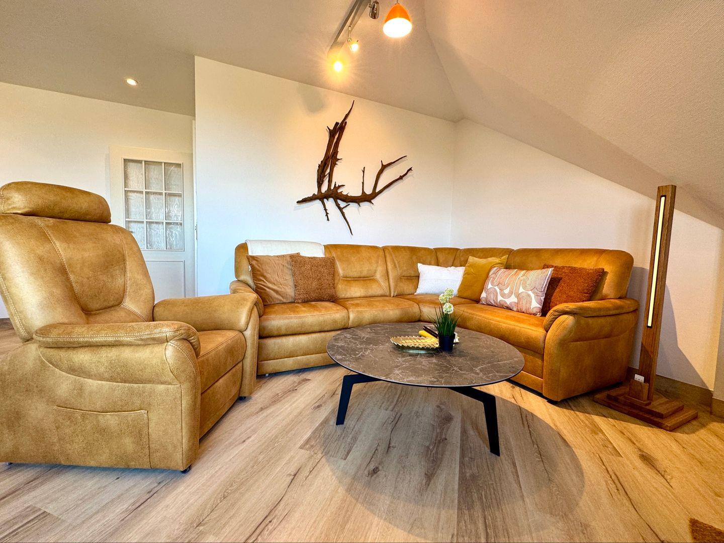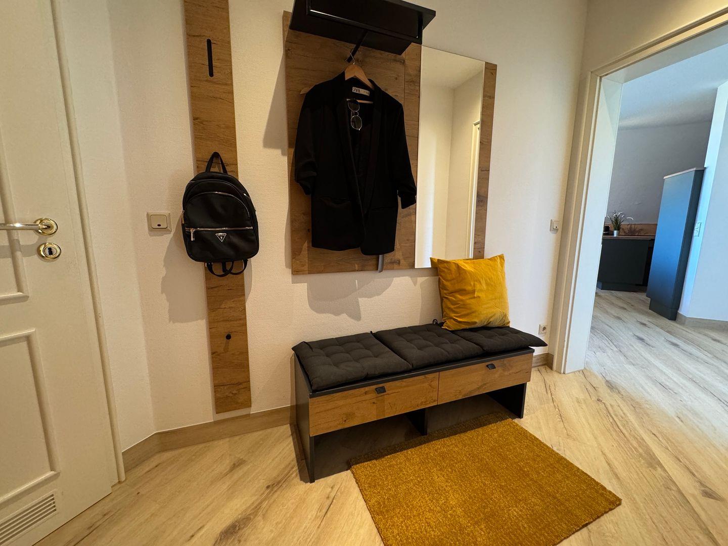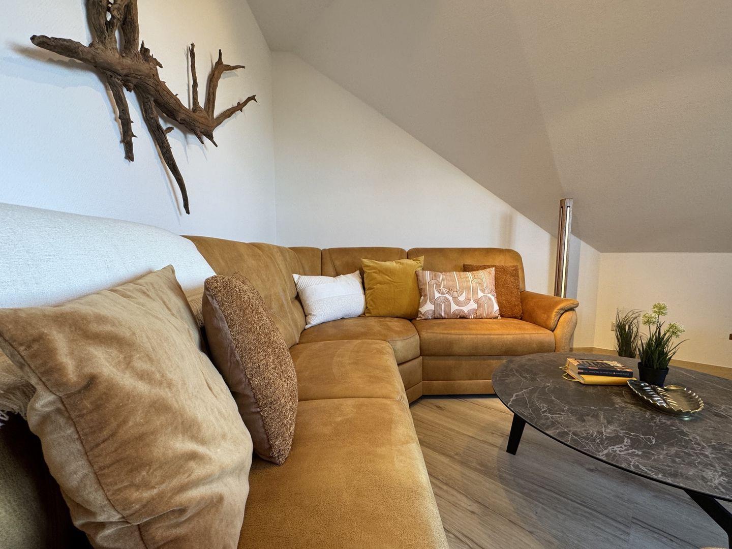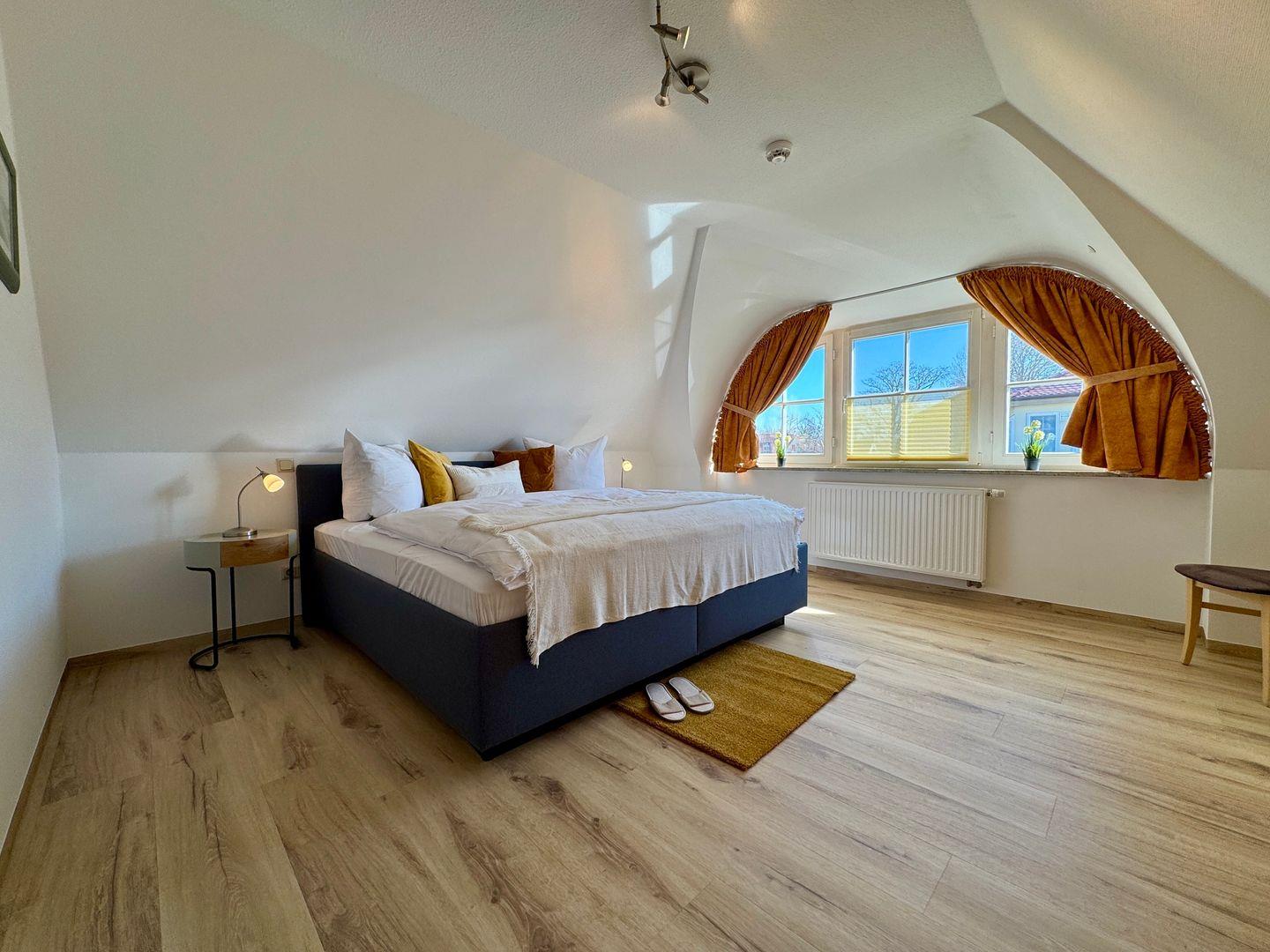Das Schlafzimmer ist ein einladender Rückzugsort und lädt mit seinem bequemen Boxspringbett zu erholsamen Nächten ein. Ein zusätzliches Gäste-WC sowie ein Badezimmer mit bodengleich eingehender Dusche und Badewanne runden die Räumlichkeiten ab. Zudem stehen Ihnen eine Waschmaschine und ein Trockner zur Eigennutzung zur Verfügung, was besonders für längere Aufenthalte von Vorteil ist.