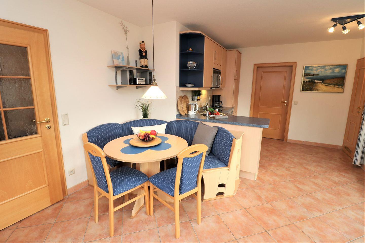 Ein großzügiges Maisonettappartement im Obergeschoss für maximal 4 Personen mit einem Balkon Richtung Osten. Das Appartement verfügt über ein Wohnzimmer mit Schlafcouch und einer separaten Küche, sowie ein Schlafzimmer mit einem komfortablem Doppelbett. Das Badezimmer verfügt über eine Dusche/WC und einer Waschmaschine. Haustiere und Rauchen sind nicht gestattet, jedoch gibt es WLAN für einen bequemen Internetzugang während des Aufenthalts. Diesem Appartement wird der Tiefgaragenstellplatz Nr. 75 zugeordnet.