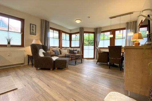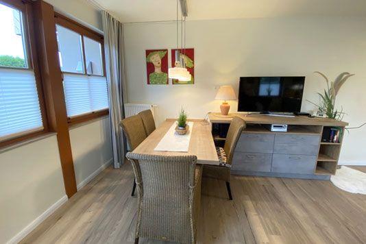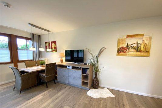 Ein gemütliches Erdgeschoss-Appartement für maximal 4 Personen mit einer sonnigen Süd-West-Terrasse. Das Appartement Verfügt über ein Wohnzimmer mit Schlafcouch und integrierter Küchenzeile und ein Schlafzimmer mit einem gemütlichem Doppelbett, für erholsamen Schlaf. Das Badezimmer ist mit einer ebenerdigen Dusche und WC ausgestattet. Haustiere und Rauchen sind nicht gestattet, jedoch gibt es WLAN für einen bequemen Internetzugang während des Aufenthalts. Im Gemeinschaftsraum in der Tiefgarage stehen Waschmaschine und Trockner gegen Gebühr zur Verfügung. Ideal für einen entspannten Aufenthalt! Diesem Appartement ist der Tiefgaragenstellplatz Nr. 01 zugeordnet.