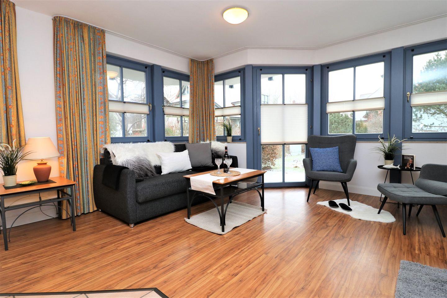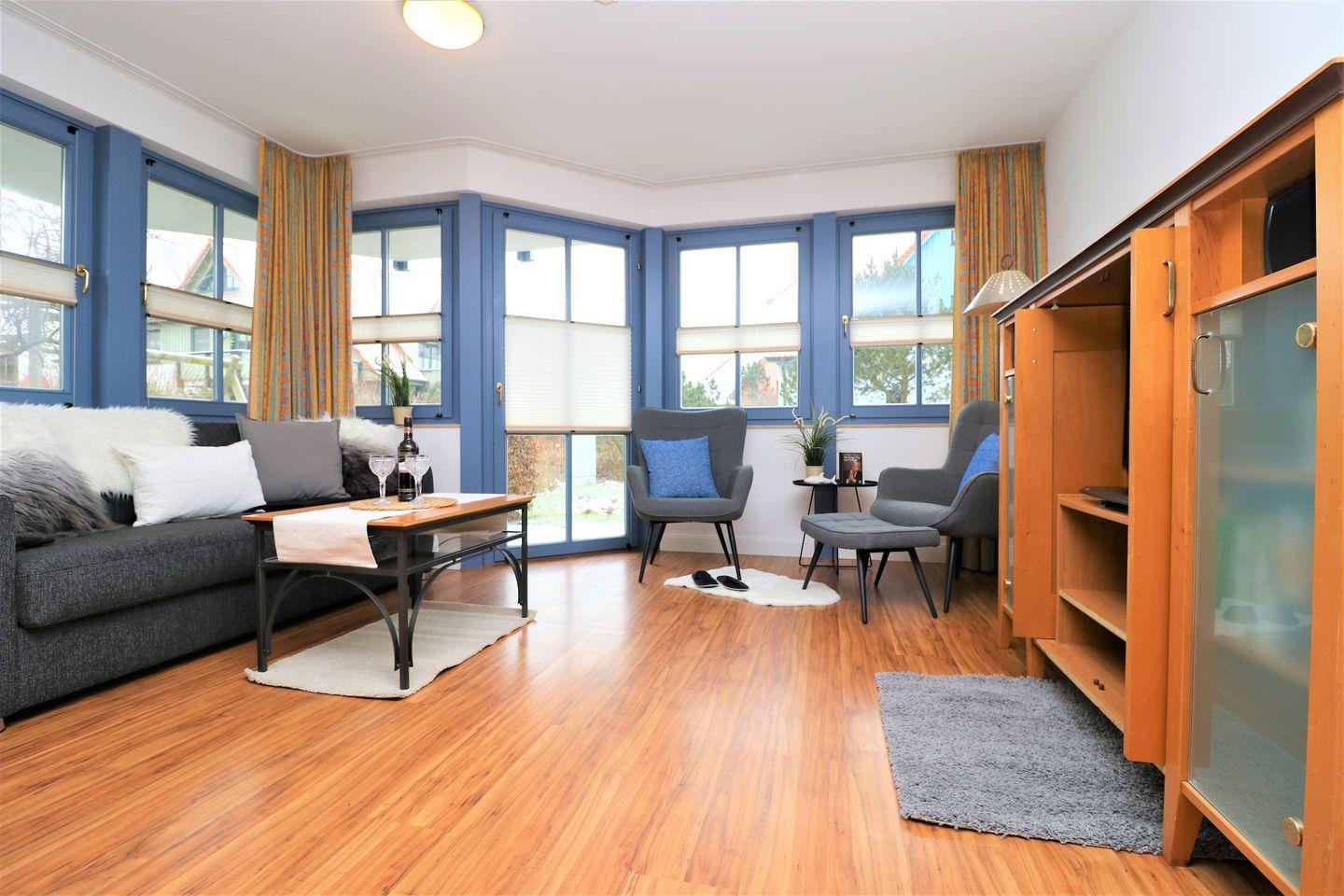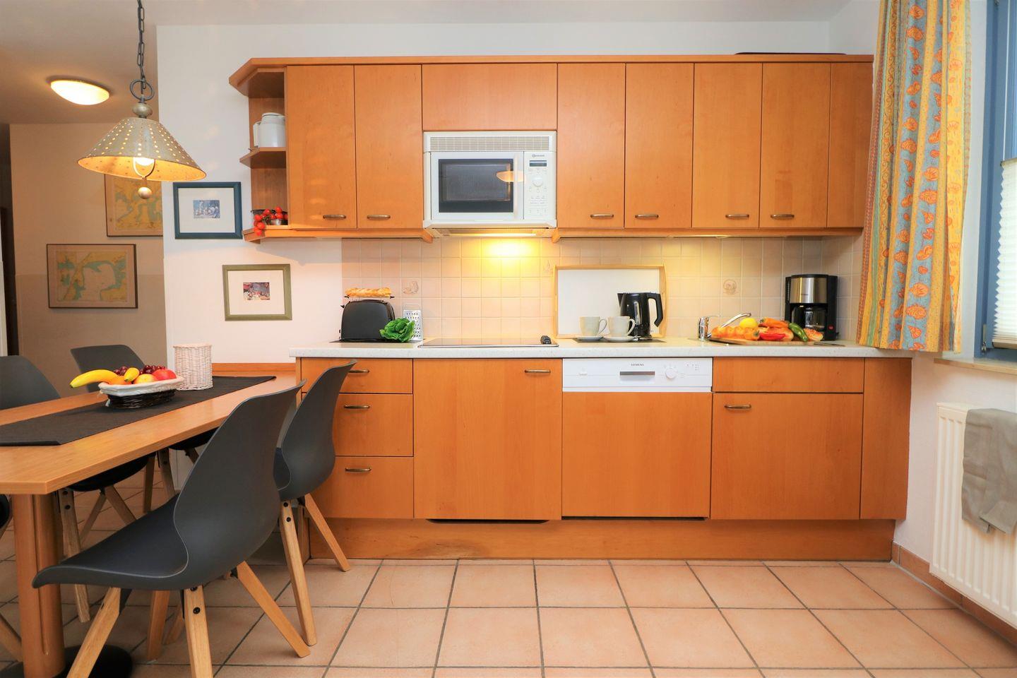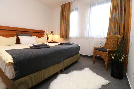 Ein geräumiges Erdgeschoss-Appartement für bis zu 4 Personen mit einer Terrasse nach Süden ausgerichtet. Das Appartement Verfügt über ein Wohnzimmer mit integrierter Küchenzeile und zwei Schlafzimmer mit jeweils einem gemütlichem Doppelbett, für erholsamen Schlaf. Das Badezimmer ist mit Doppelwaschbecken, einer Dusche und WC ausgestattet. Haustiere sind erlaubt, jedoch ist das Rauchen nicht gestattet. Zu diesem Appartement steht Ihnen KEIN Wlan zur Verfügung. Im Gemeinschaftsraum in der Tiefgarage ste-hen Waschmaschine und Trockner gegen Gebühr zur Verfügung. Ideal für einen entspannten Aufenthalt! Diesem Appartement ist der Außenstellplatz Nr. 28 zugeordnet.