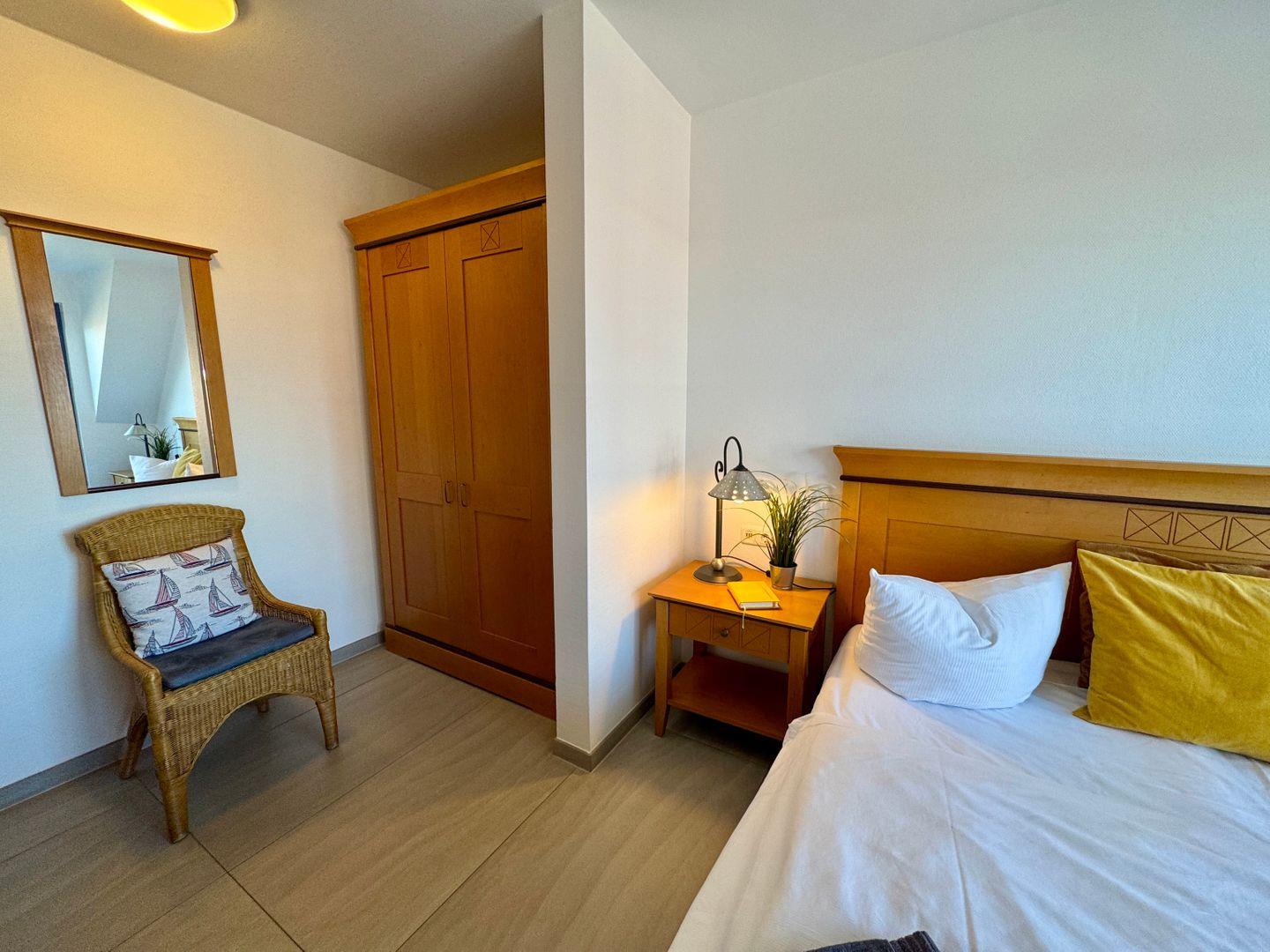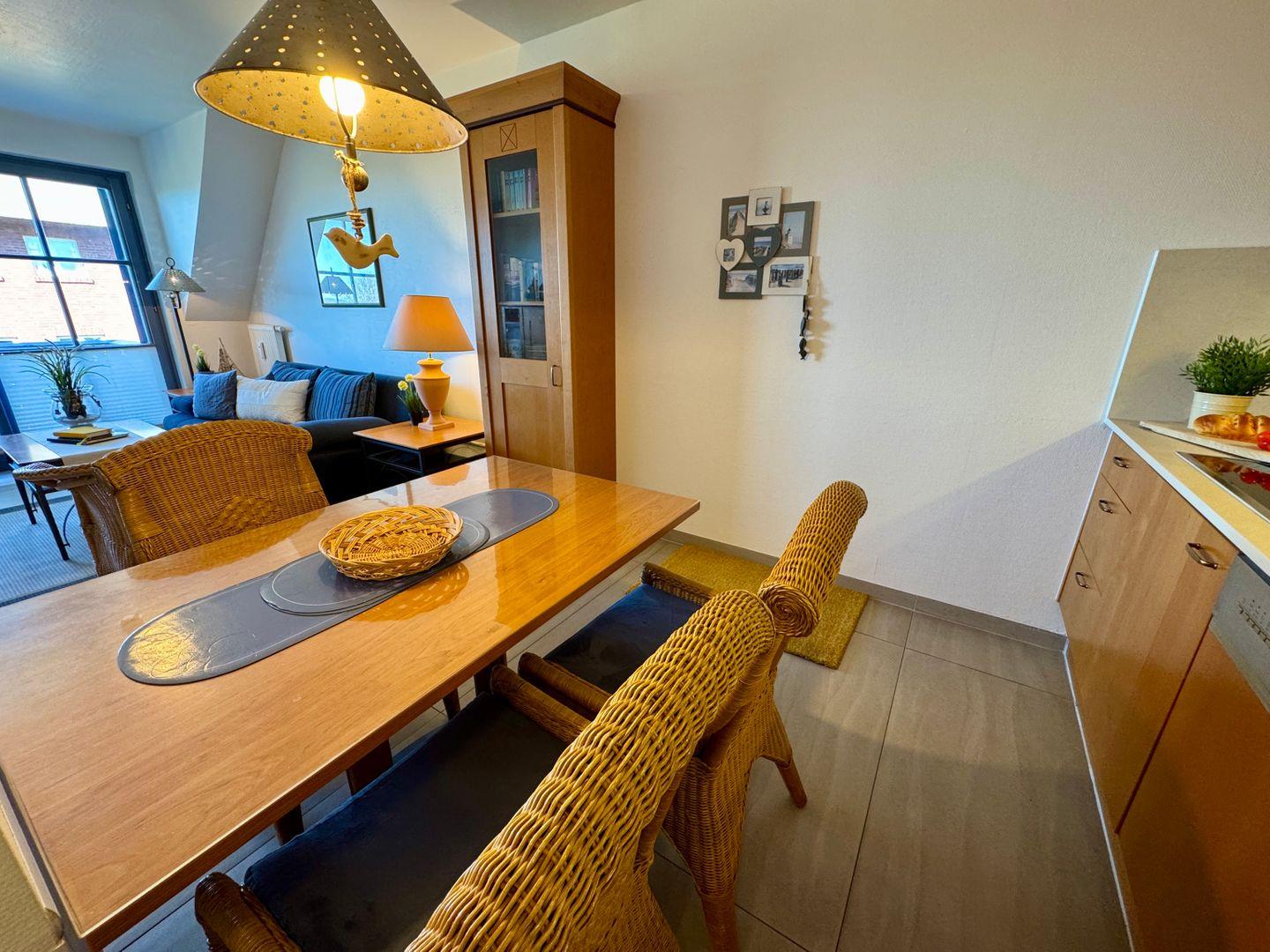 Ein charmantes Appartement im Obergeschoss für maximal 2 Personen mit einem großen Westbalkon und Ostseeblick. Das Appartement Verfügt über ein Wohnzimmer mit integrierter Küchenzeile und ein Schlafzimmer mit einem gemütlichem Doppelbett, für erholsamen Schlaf. Das Badezimmer ist mit einer ebenerdigen Dusche und WC ausgestattet. Haustiere und Rauchen sind nicht gestattet, jedoch gibt es WLAN für einen bequemen Internetzugang während des Aufenthalts. Im Gemeinschaftsraum in der Tiefgarage stehen Waschmaschine und Trockner gegen Gebühr zur Verfügung. Ideal für einen entspannten Aufenthalt! Diesem Appartement ist der Außenstellplatz Nr. 30 zugeordnet.