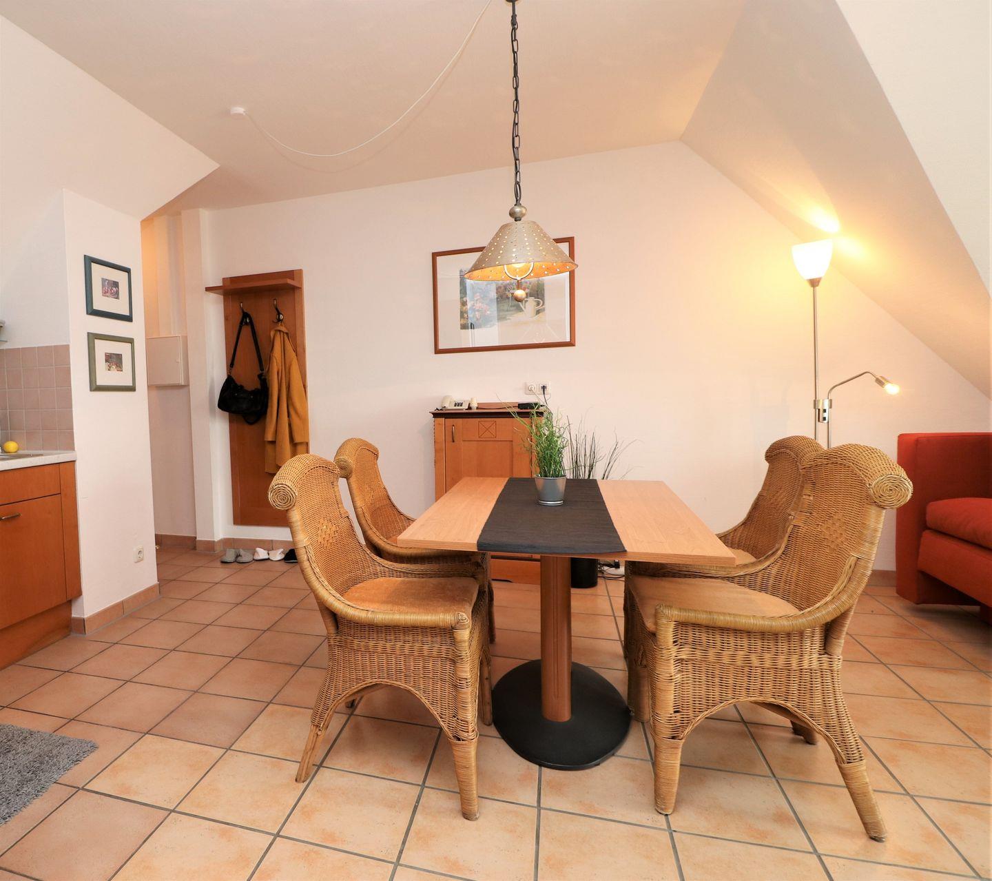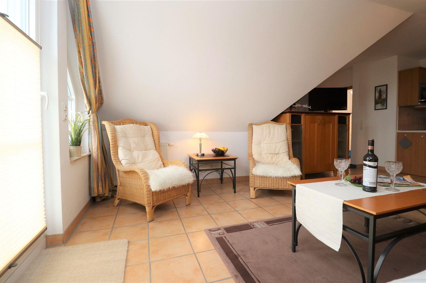 Ein gemütliches Dachgeschoss-Appartement für maximal 4 Personen mit einem Westbalkon und Ostseeblick. Das Appartement Verfügt über ein Wohnzimmer mit Schlafcouch und integrierter Küchenzeile und ein Schlafzimmer mit einem gemütlichem Doppelbett, für erholsamen Schlaf. Das Badezimmer ist mit einer Badewanne und WC ausgestattet. Haustiere sind erlaubt, jedoch ist das Rauchen nicht gestattet. WLAN ist verfügbar, um Ihren Aufenthalt zu vervollständigen. Im Gemeinschaftsraum in der Tiefgarage stehen Waschmaschine und Trockner gegen Gebühr zur Verfügung. Ideal für einen entspannten Aufenthalt! Diesem Appartement ist der Außenstellplatz Nr. 35 zugeordnet.