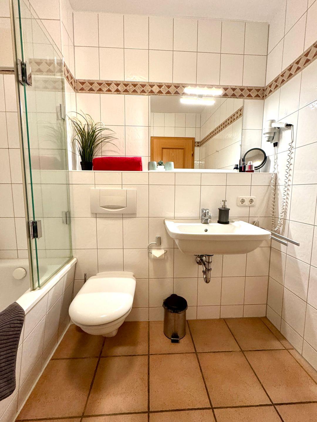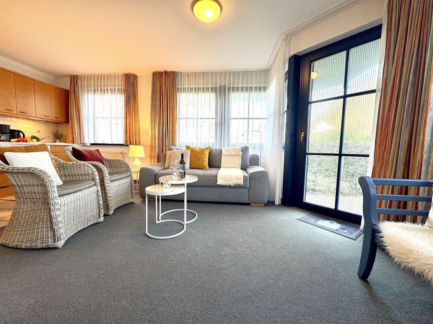 Ein gemütliches Erdgeschoss-Appartement für bis zu 4 Personen mit einer Terrasse nach Westen ausgerichtet. Das Appartement Verfügt über ein Wohnzimmer mit Schlafcouch und integrierter Küchenzeile und ein Schlafzimmer mit einem gemütlichem Doppelbett, für erholsamen Schlaf. Das Badezimmer ist mit einer Ba-dewanne und WC ausgestattet. Haustiere sind erlaubt, jedoch ist das Rauchen nicht gestattet. WLAN ist verfügbar, um Ihren Aufenthalt zu vervollständigen. Im Gemeinschaftsraum in der Tiefgarage stehen Waschmaschine und Trockner gegen Gebühr zur Verfügung. Ideal für einen entspannten Aufenthalt! Diesem Appartement ist der Außenstellplatz Nr. 38 zugeordnet.