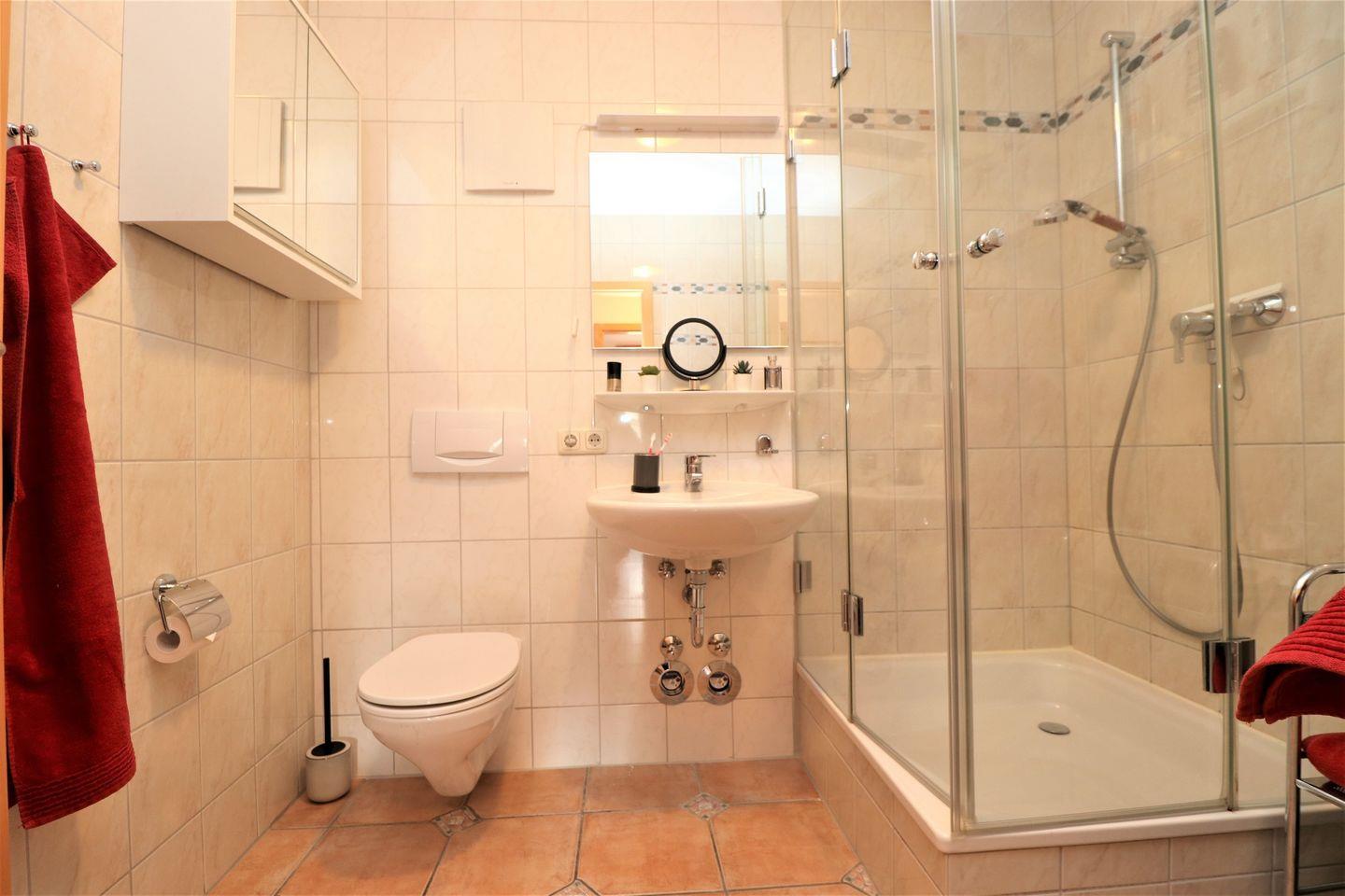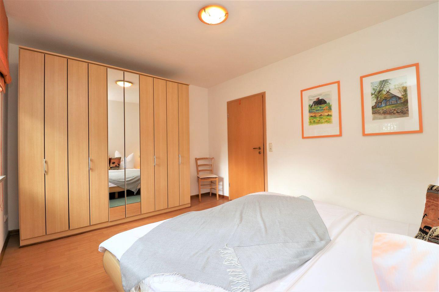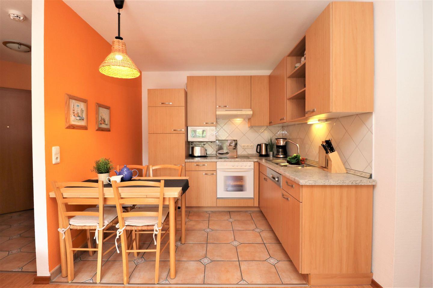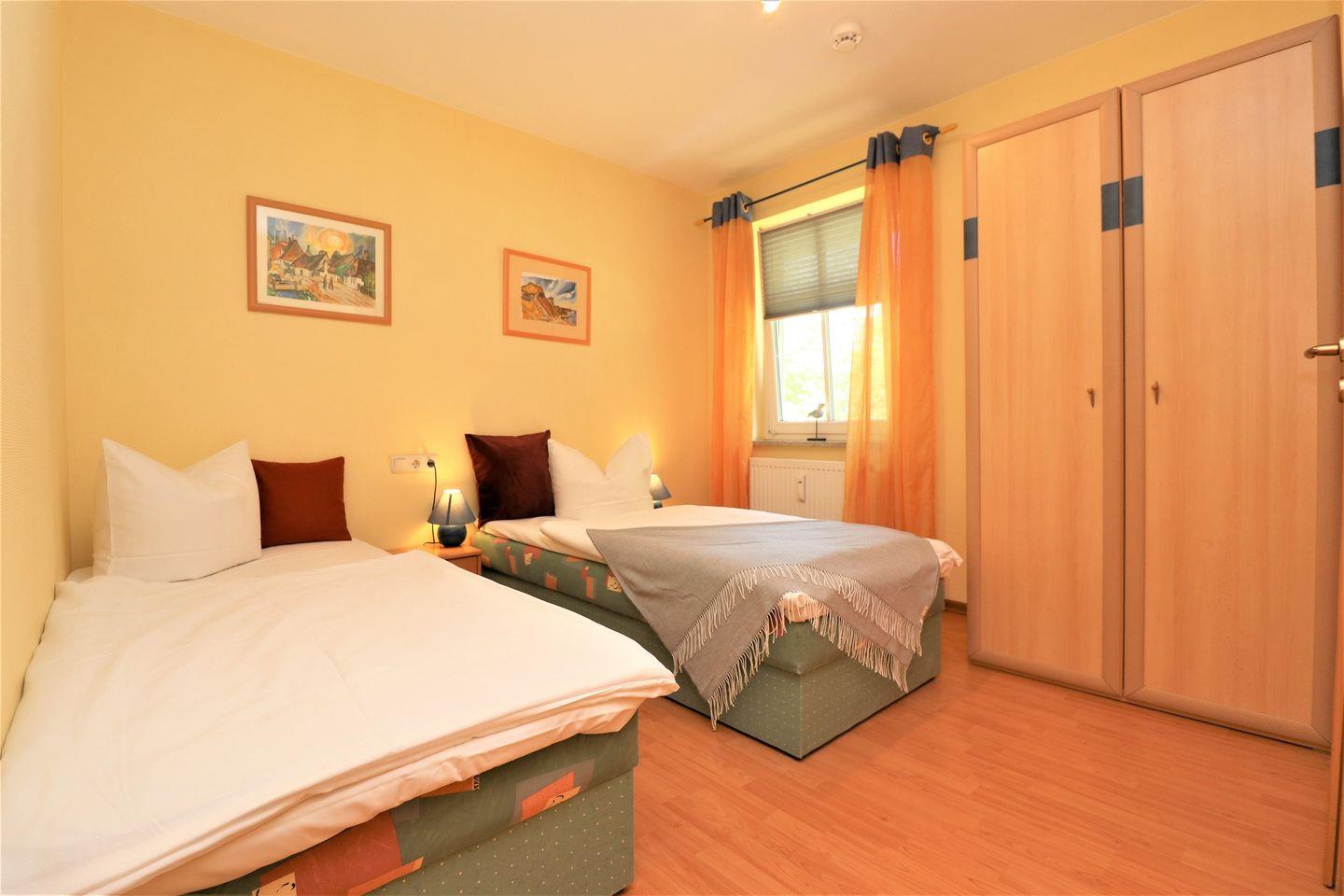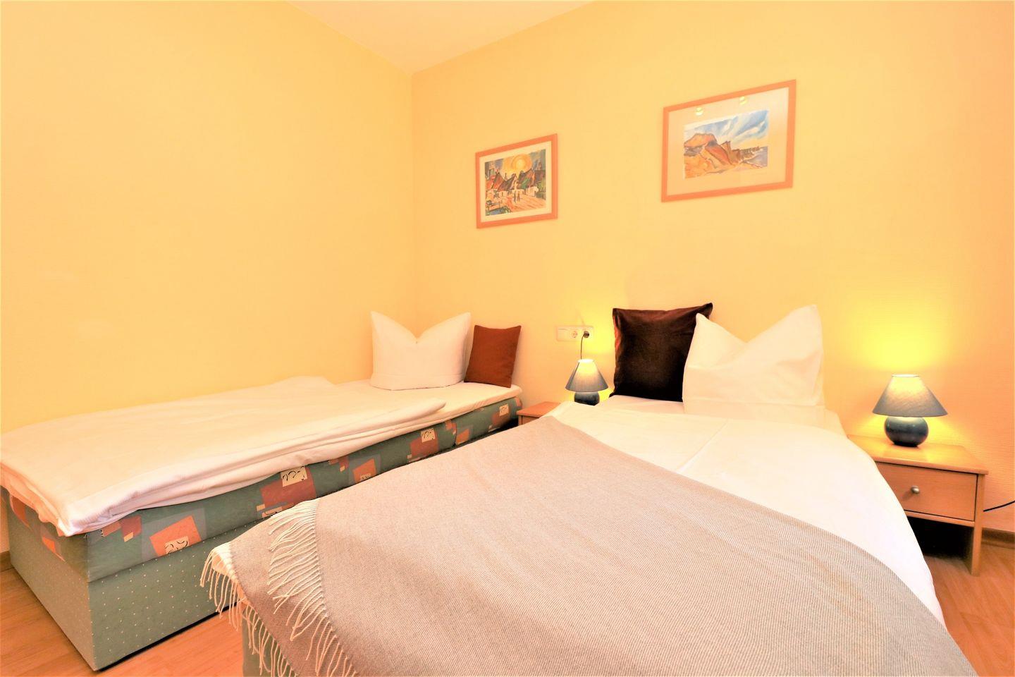 Das Appartement für bis zu 4 Personen bietet eine komfortable und gut durchdachte Ausstattung für einen angenehmen Aufenthalt. Es verfügt über ein gemütliches Wohnzimmer mit einer integrierten Küchenzeile, die Ihnen die Möglichkeit gibt, Ihre Mahlzeiten selbst zuzubereiten. Das Appartement umfasst zudem zwei Schlafzimmer: ein Schlafzimmer mit einem Doppelbett für zwei Personen und ein weiteres Schlafzimmer mit Einzelbetten, ideal für zwei Gäste. Das moderne Badezimmer ist mit einer Dusche und einem WC ausgestattet und sorgt für zusätzlichen Komfort. Für Ihre Annehmlichkeiten stehen Ihnen zudem ein kostenfreier WLAN-Zugang sowie ein Pkw-Stellplatz zur Verfügung, der Ihnen einen unkomplizierten Zugang zu Ihrem Fahrzeug ermöglicht. Ein Fahrradschuppen (Nr. 11) ist ebenfalls vorhanden, falls Sie mit dem Fahrrad anreisen. Bitte beachten Sie, dass in diesem Appartement weder Haustiere erlaubt sind noch das Rauchen gestattet ist, um allen Gästen eine angenehme und Allergiker freundliche Atmosphäre zu bieten. Dieses Appartement ist die ideale Wahl für Familien oder kleine Gruppen, die eine ruhige, gut ausgestattete Unterkunft suchen, in der Sie sich wie zu Hause fühlen können.