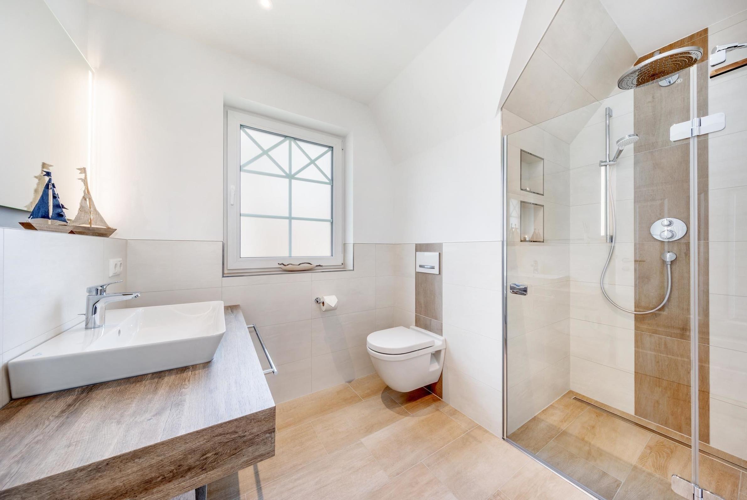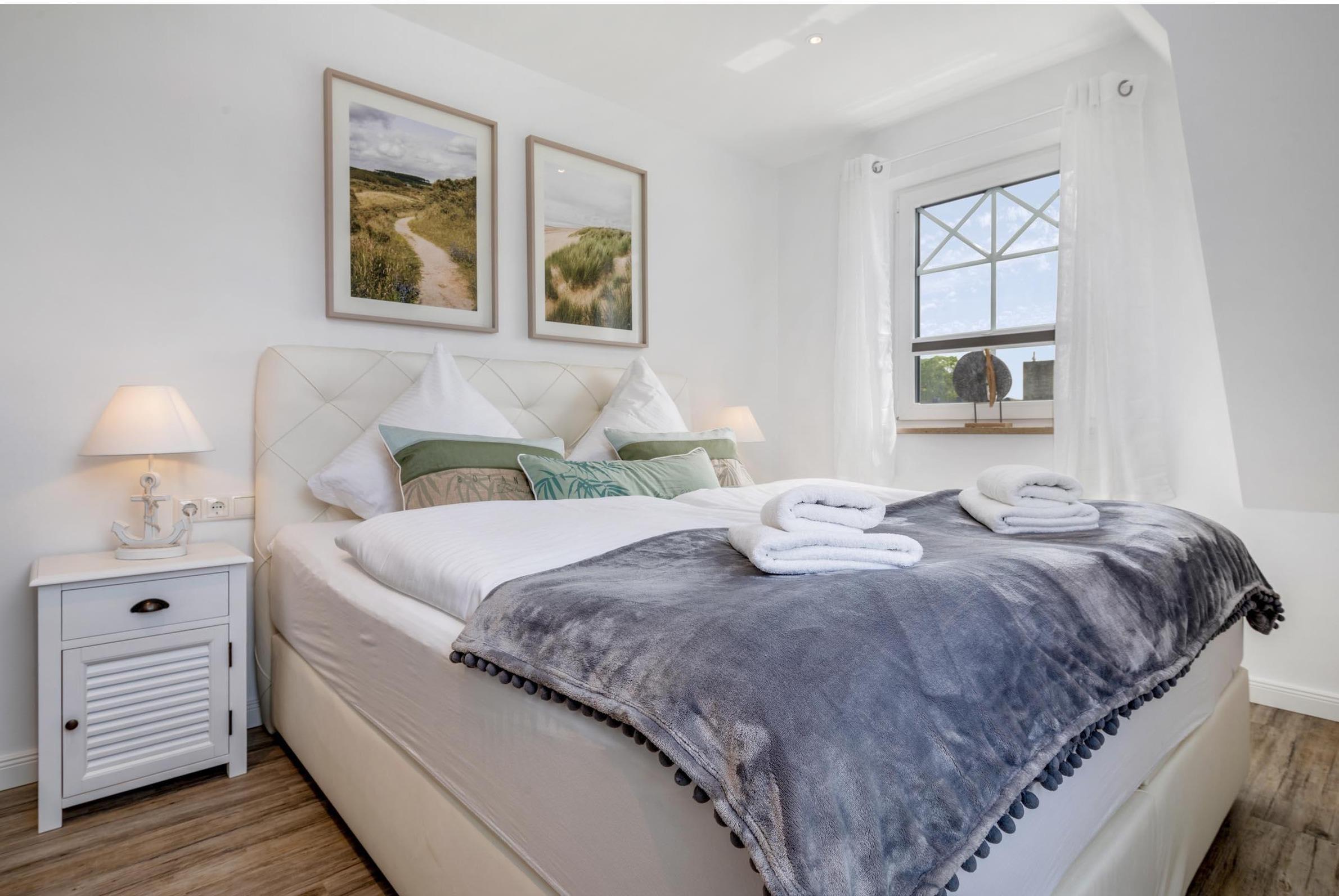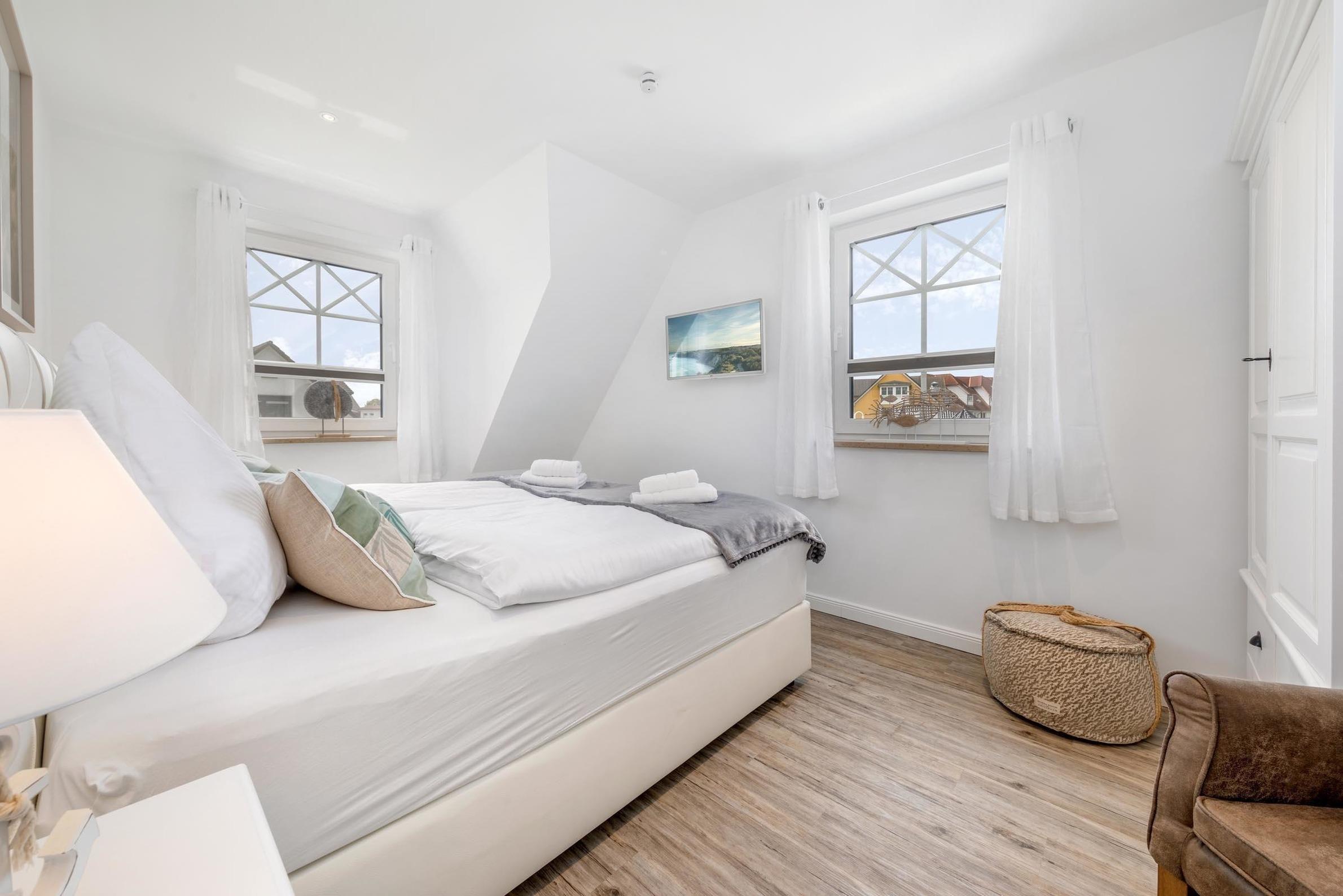 Das Haus verfügt über 4 Schlafzimmer, darunter 2 mit Doppelbetten und 1 mit Einzelbetten, ideal für bis zu 8 Personen. Ein Dachboden im Darßer Stil mit Panoramafenster und Schlafcouch ist ein Highlight.
