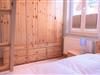 Das Elternschlafzimmer ist mit einem Doppelbett ausgestattet.