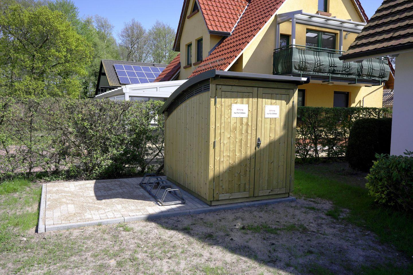 Zur Wohnung gehört eine Westterrasse, ein abschließbarer Fahrradschuppen und 1 PkW Stellplatz, ebenso der Internetzugang über W-LAN.