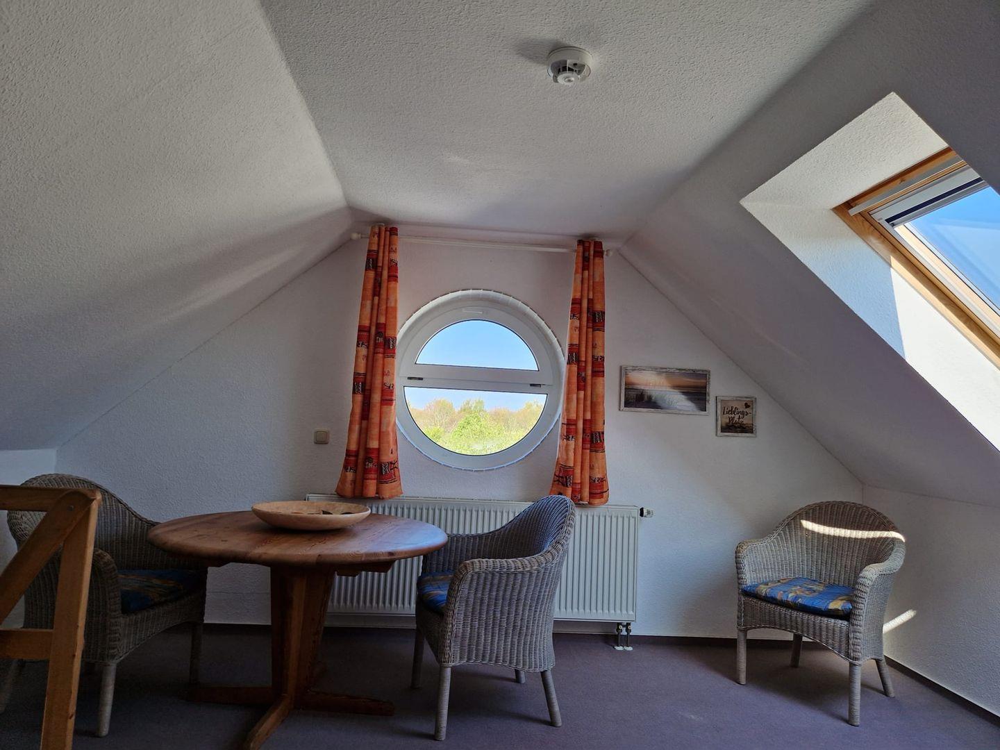 Die Schlüsselübergabe erfolgt in der Zingster Zimmerbörse in der Zeit von 16 - 17 Uhr.Große Ferienwohnung über 2 Ebenen in einem Appartmenthaus, ca.75 m² groß, im OG, mit Balkon, Wohnzimmer mit kleiner Küchenzeile und TV, 2 Schlafzimmer mit Doppelbett, einem Bad mit Dusche/WC. Im oberen Teil der Wohnung befindet sich ein offenes Schlafzimmer mit einer Sitzgelegenheit.