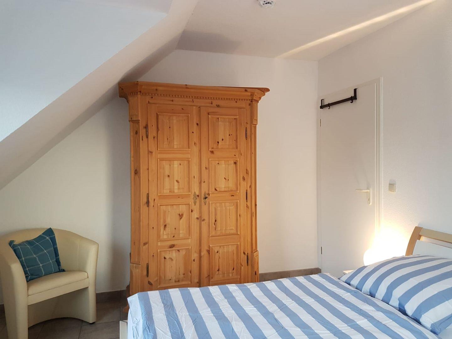 Große Ferienwohnung über 2 Ebenen in einem Appartmenthaus, ca.75 m² groß, im OG, mit Balkon, Wohnzimmer mit kleiner Küchenzeile und TV, 2 Schlafzimmer mit Doppelbett, einem Bad mit Dusche/WC. Im oberen Teil der Wohnung befindet sich ein offenes Schlafzimmer mit einer Sitzgelegenheit.