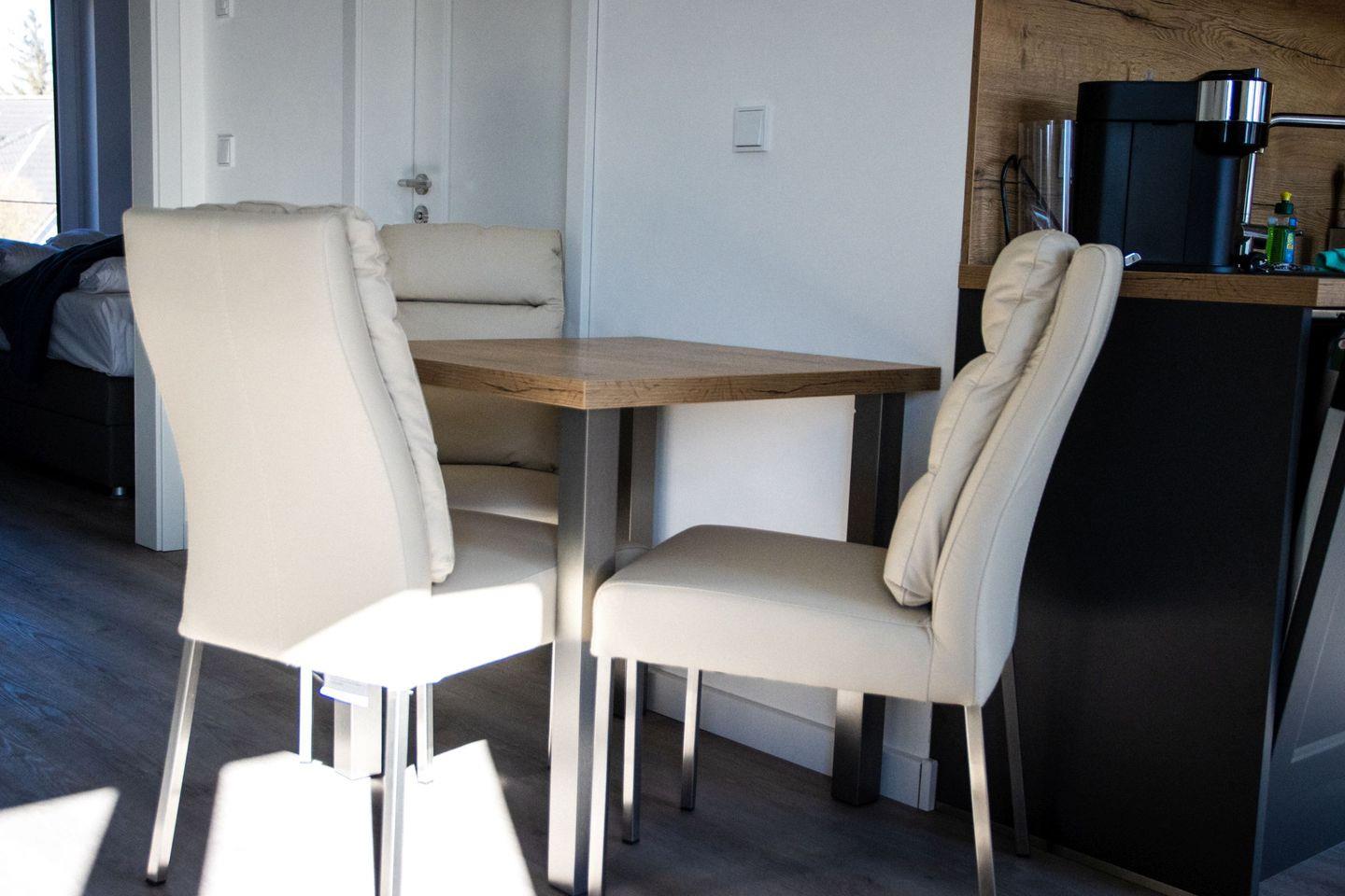 Beginnen Sie den Tag mit einem ausgiebigen Frühstück am gemütlichen Esstisch oder auf dem Balkon bei ersten Sonnenstrahlen.