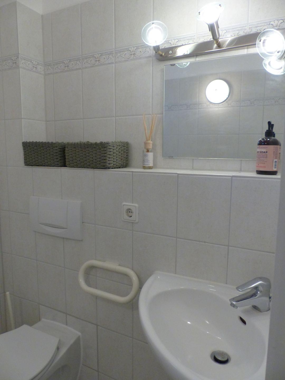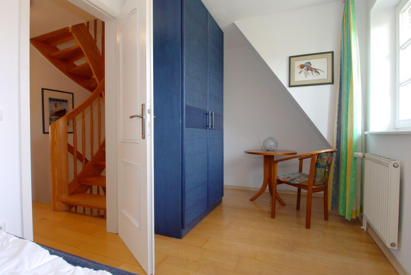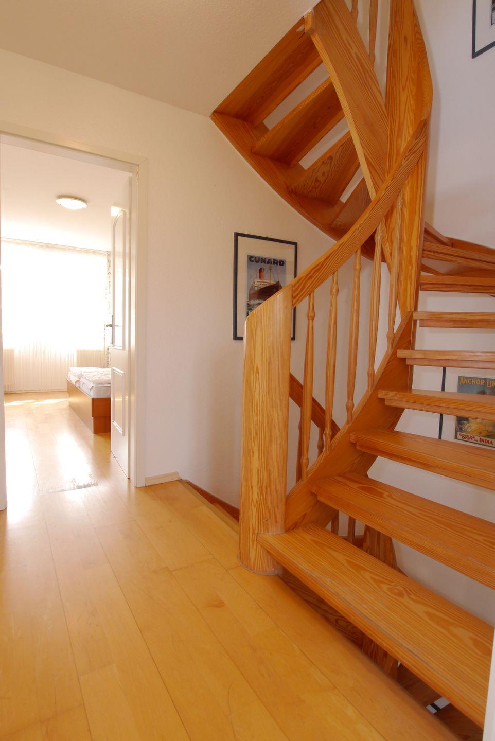 Das Haus wir für max. 4 Erwachsene und 2 Kinder vermietet. Im Erdgeschoss befinden sich die Küche, das Wohnzimmer mit Essecke und Zugang zur Südterrasse sowie ein Gäste WC. Im Obergeschoss sind die beiden Schlafzimmer einmal mit Ehebett und einmal mit eine Doppelbett 1,40m breit und ein Bad mit Badewanne und WC. Zum Haus gehört ein PKW-Stellplatz.