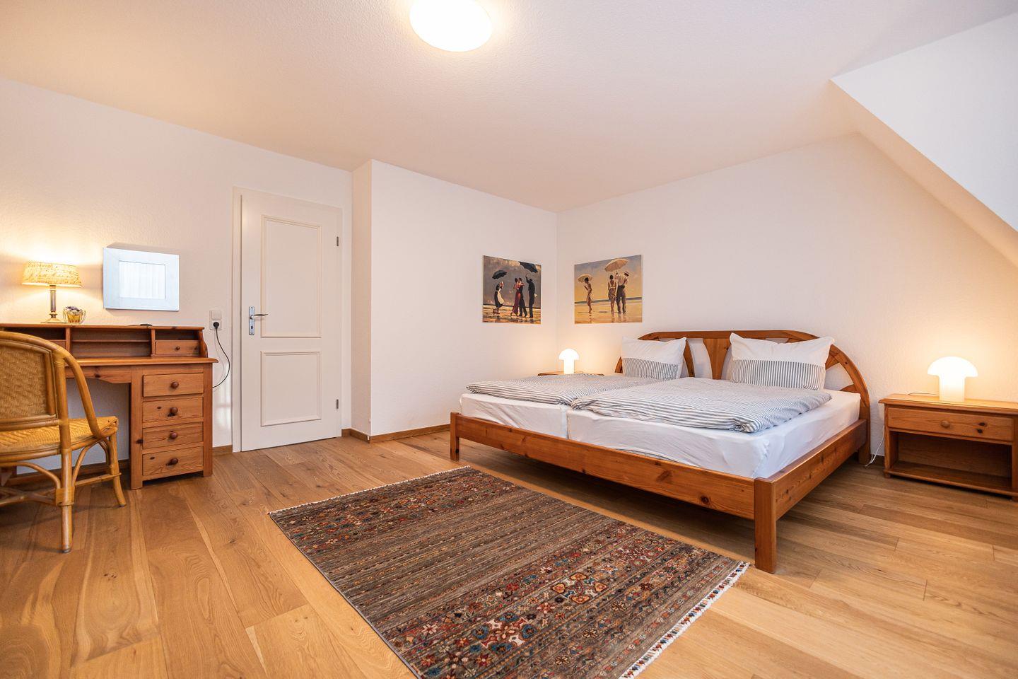 Zur Ostsee sind es nur wenige Meter. Im Erdgeschoss sind das Wohnzimmer mit Essecke und Zugang zur Südterrasse sowie die separate Küche und ein Gäste-WC. 2 Schlafzimmer einmal mit Ehebett und einmal mit 2 Einzelbetten sowie ein Bad mit Dusche und WC befinden sich im Obergeschoss. Im Untergeschoss befinden sich noch ein 3. Schlafzimmer mit Ehebett und ein weiteres Bad mit Dusche und WC. Ein Internetzugang und eine Waschmaschine sind ebenfalls vorhanden.