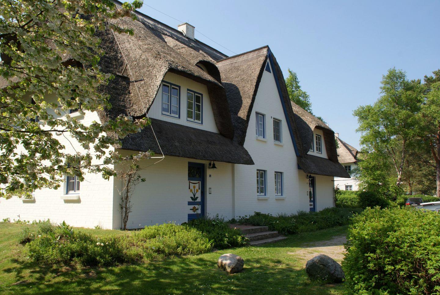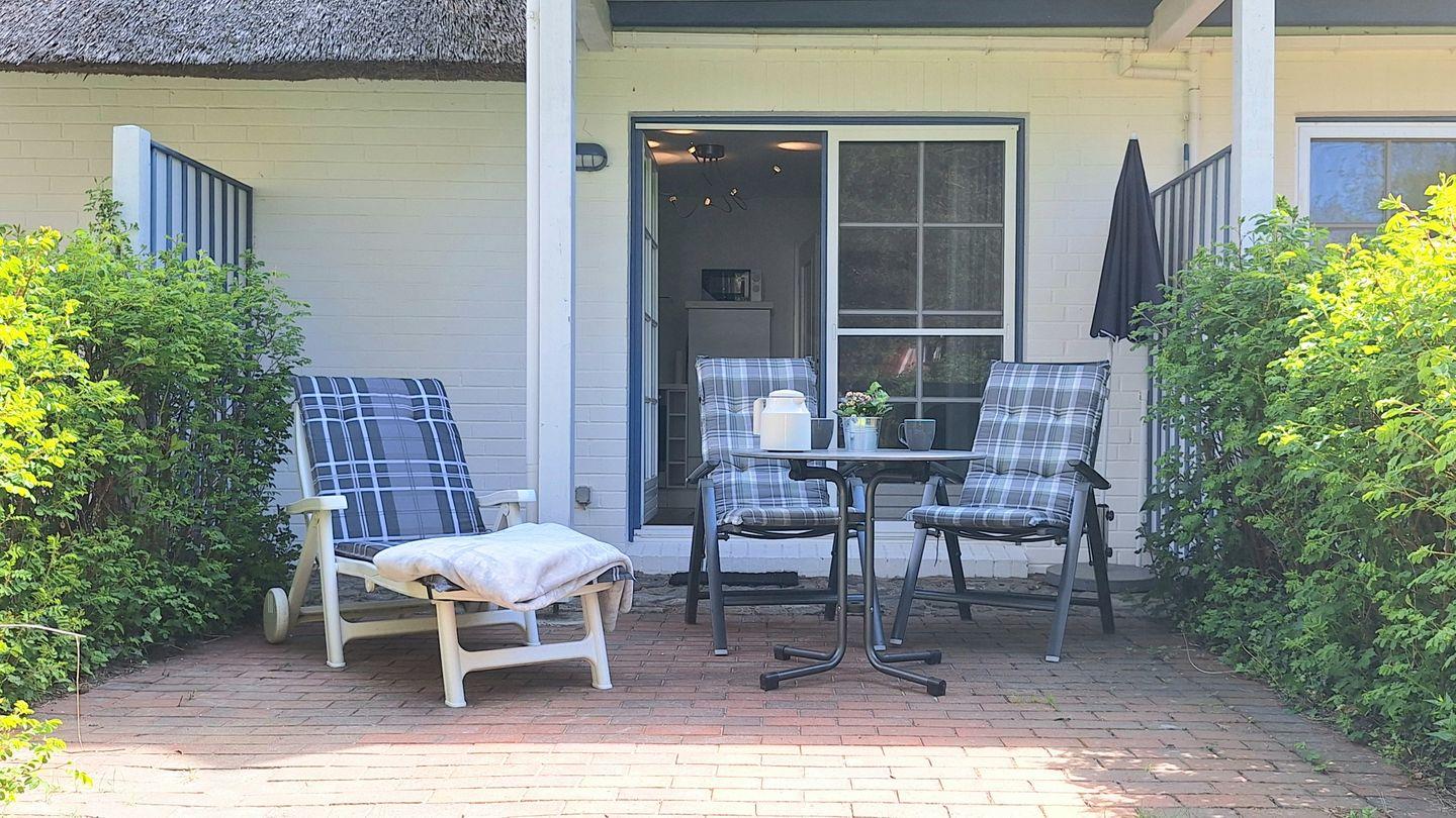 Die reetgedeckte Ferienanlage liegt etwas außerhalb des belebten Zentrums von Zingst, direkt hinter dem Deich, am feinsandigen Ostseestrand und am Anfang des malerischen Osterwaldes mit seinem Moor. Die 41 m2 große Wohnung wird für max. 2 Personen vermietet. Die moderne und voll ausgestattete Küche, mit Essbereich, ist in den Wohnraum integriert. Von hier aus gelangen Sie auch auf die Westterrasse. Das Schlafzimmer ist mit einem Ehebett und das Bad mit bodengleicher Dusche, WC und Waschmaschine ausgestattet. Zur Wohnung gehört ein kostenfreier PKW-Stellplatz, direkt vor dem Haus. Die Wohnung ist optimaler Ausgangspunkt für abwechslungsreiche Fahrradtouren in einzigartiger Naturlandschaft, in der Region Fischland-Darß-Zingst.