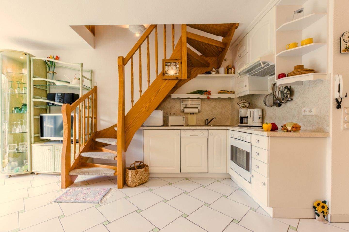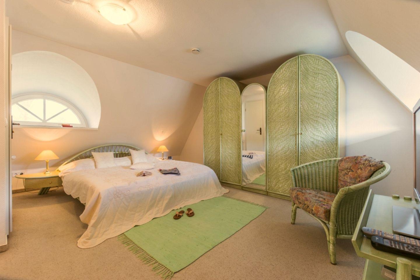 Auf der oberen Etage ist das Schlafzimmer mit Ehebett und 2. TV-Gerät sowie ein weiteres Bad mit Dusche/WC. Aufgrund des Reetdaches und der erhöhten Brandgefahr, wünscht der Eigentümer keine Gäste mit Elektrofahrzeugen.