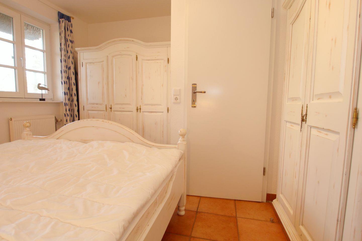 Die Wohnung ist aufgeteilt in den Wohnbereich mit separater Küche und Südterrasse. Im Badezimmer befindet sich die Dusche und das WC. Das Schlafzimmer mit Ehebett ist, wie auch der Rest der Wohnung, im gemütlichen Landhausstil eingerichtet.